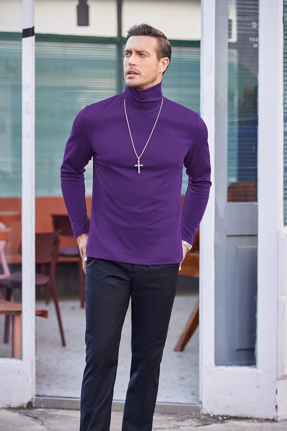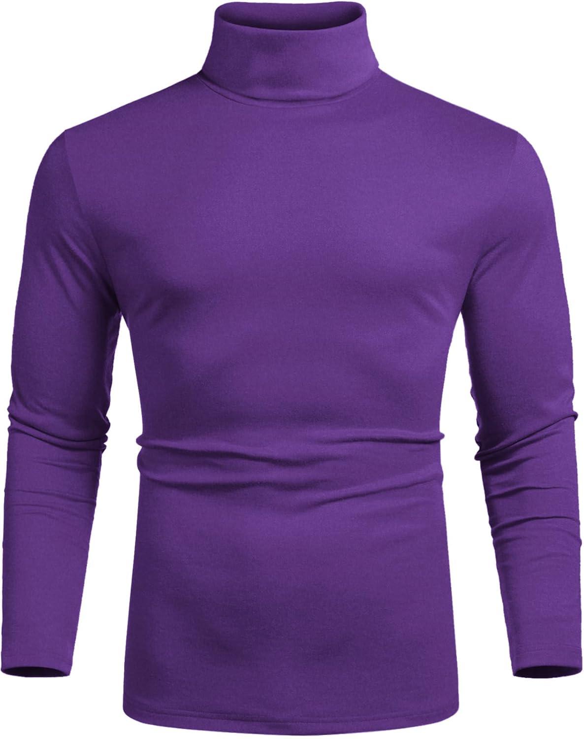 COOFANDY Men’s Slim Fit Basic Turtleneck Long Sleeve Lightweight Pullover Sweaters Casual Knitted Tops(Purple)