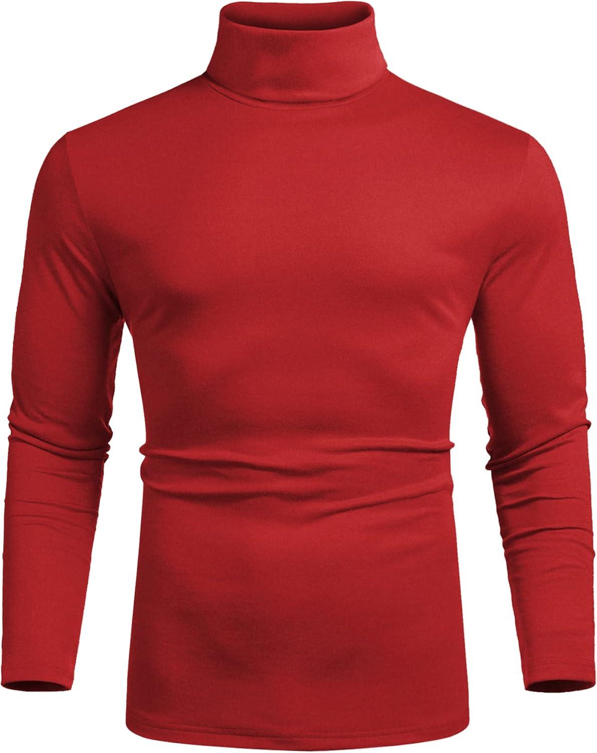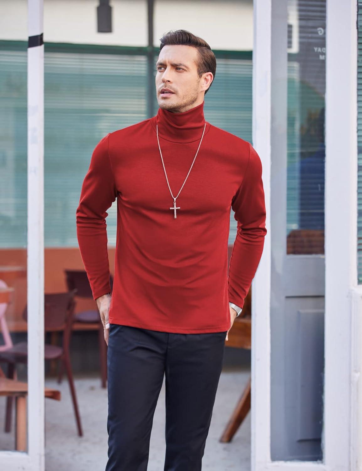 COOFANDY Men’s Slim Fit Basic Turtleneck Long Sleeve Lightweight Pullover Sweaters Casual Knitted Tops(Red)