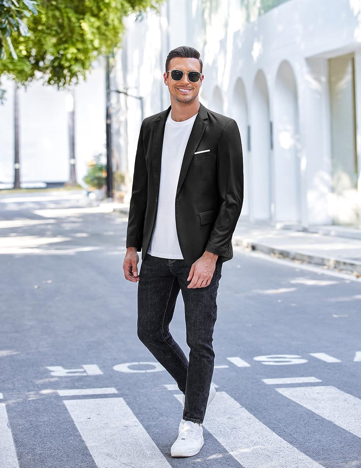 COOFANDY Men’s Slim Fit Casual Blazers Lightweight Sport Coats One Button Suit Jackets(Black)