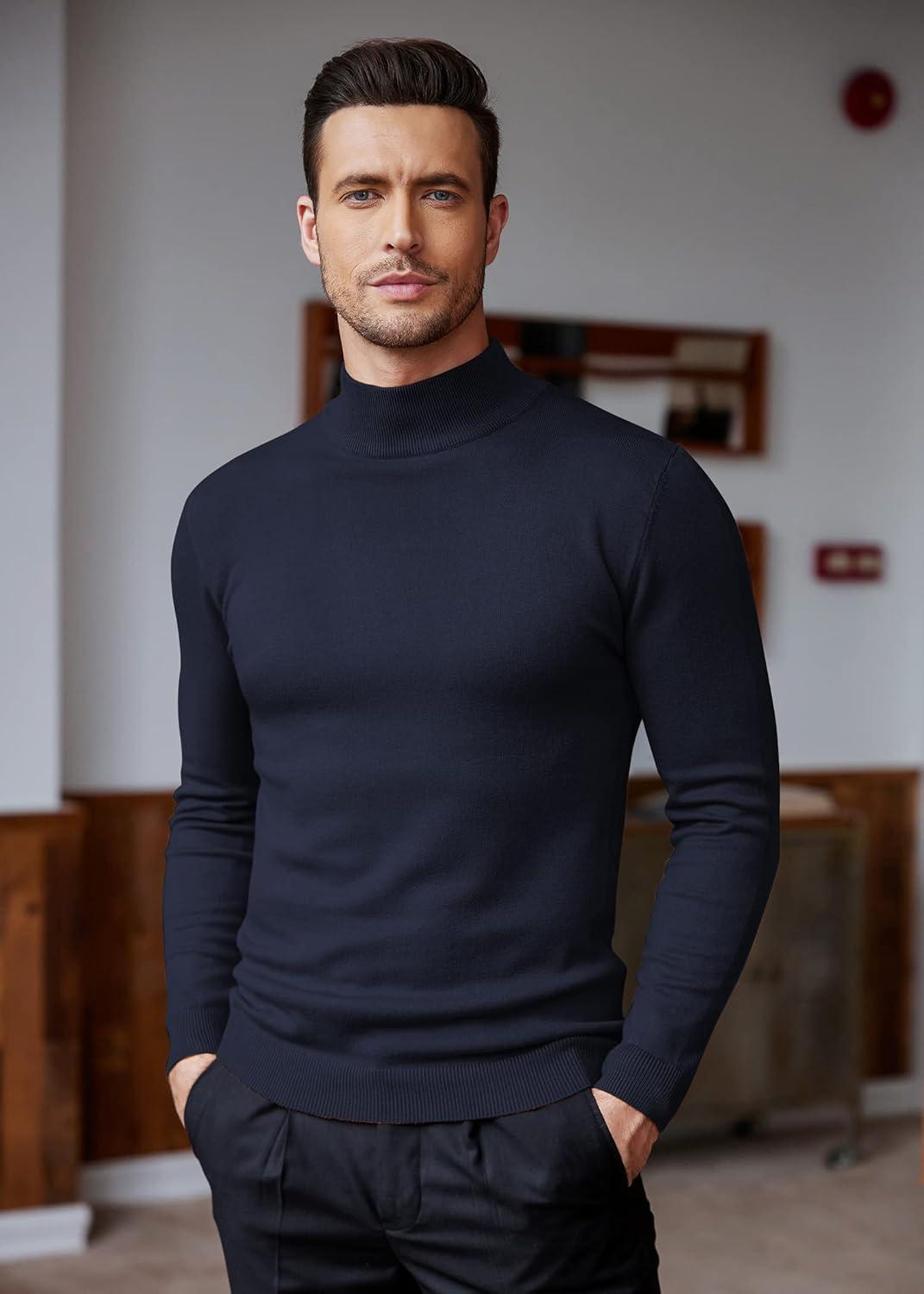 COOFANDY Men’s Slim Fit Mock Turtleneck Pullover Sweater Casual Basic Knitted Thermal Sweaters(Navy Blue)