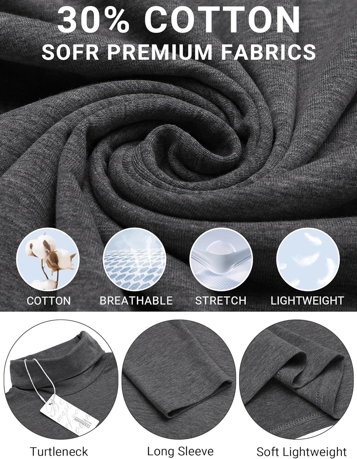 COOFANDY Men’s Slim Fit Turtleneck Cotton T Shirts Casual Long Sleeve Lightweight Pullover Sweater Basic Tops(Dark Grey)