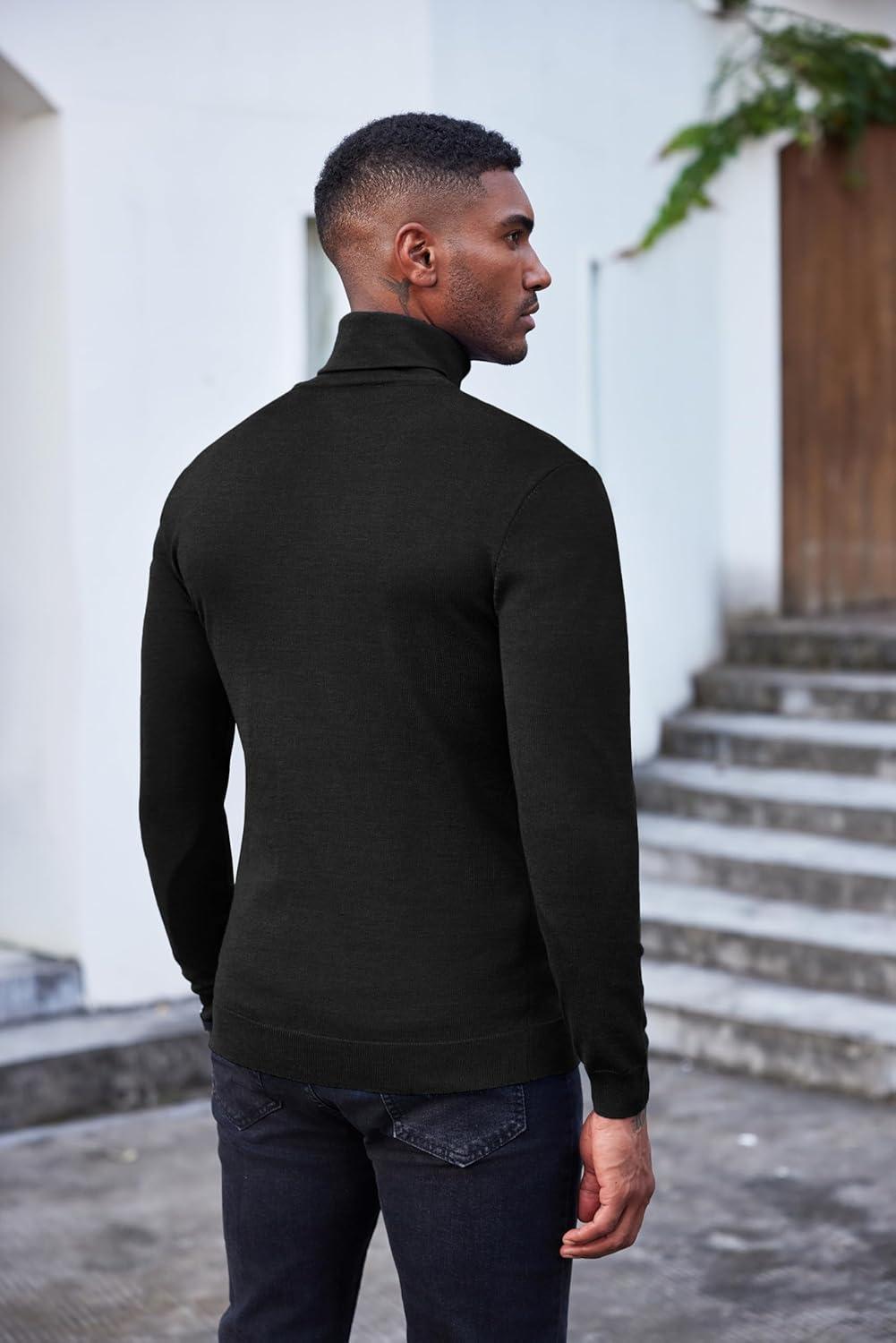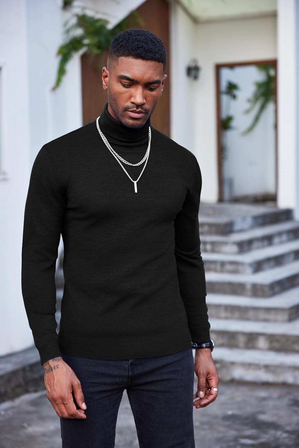 COOFANDY Men’s Slim Fit Turtleneck Sweater Casual Basic Knitted Long Sleeve Pullover Sweater(A-black)