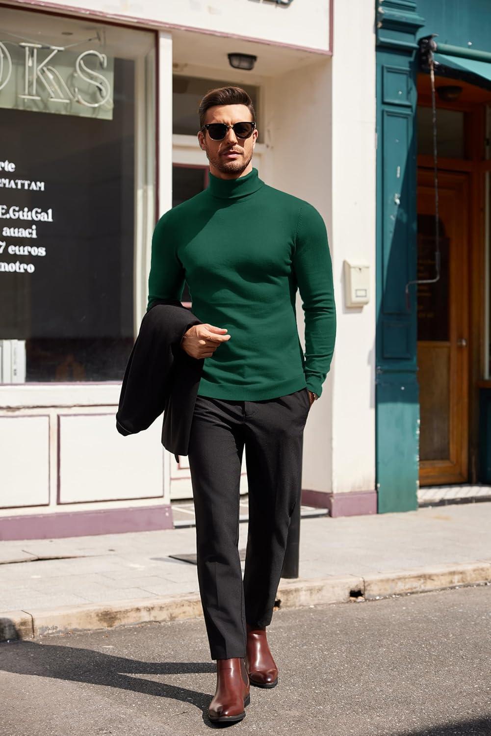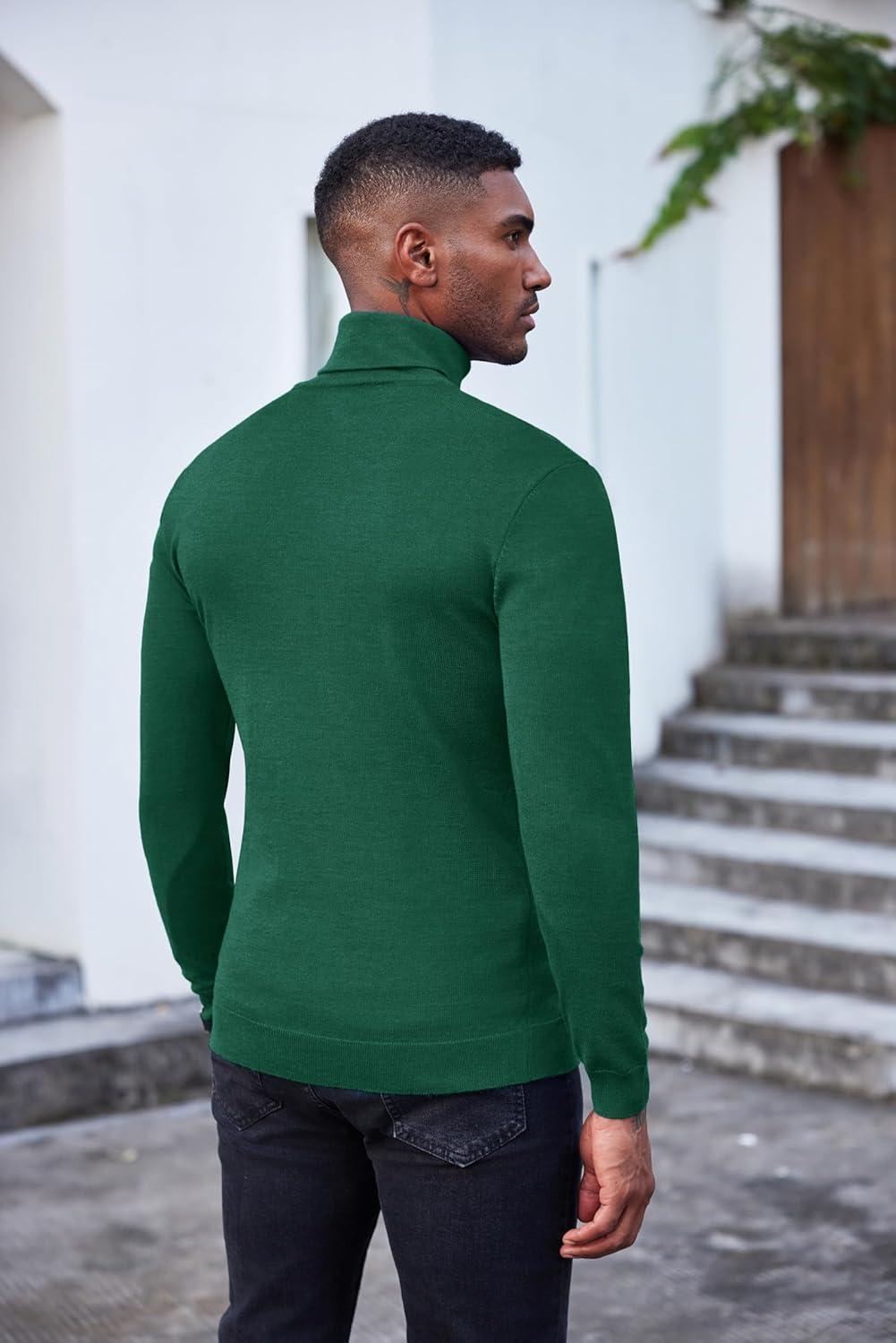 COOFANDY Men’s Slim Fit Turtleneck Sweater Casual Basic Knitted Long Sleeve Pullover Sweater(Green)