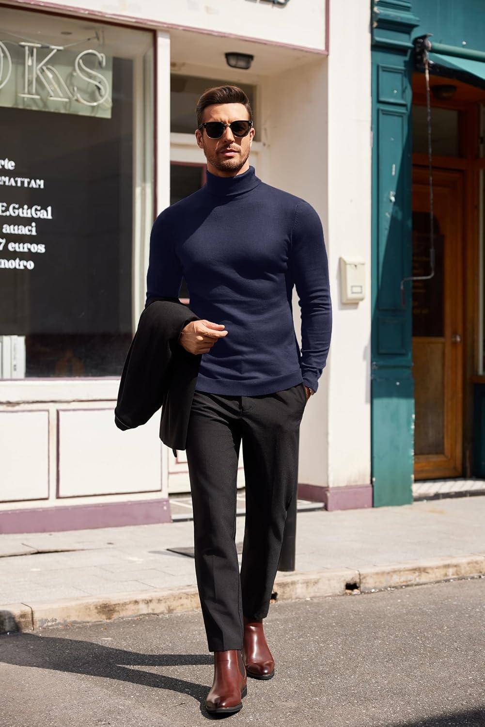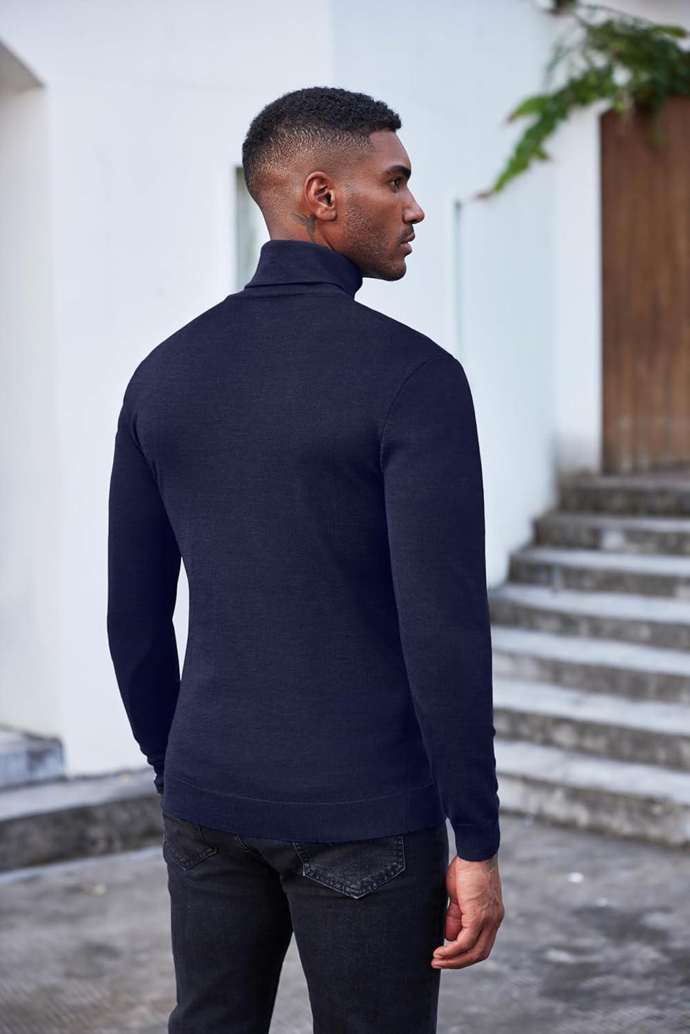 COOFANDY Men’s Slim Fit Turtleneck Sweater Casual Basic Knitted Long Sleeve Pullover Sweater(Navy)