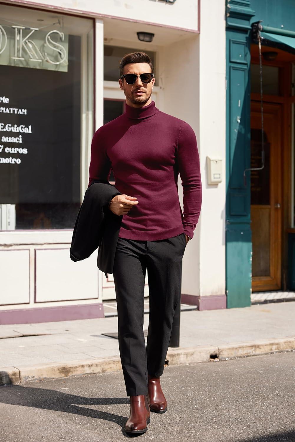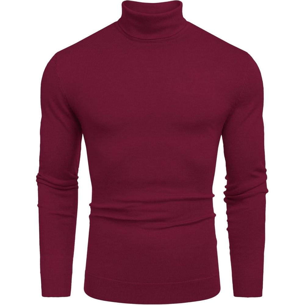 COOFANDY Men’s Slim Fit Turtleneck Sweater Casual Basic Knitted Long Sleeve Pullover Sweater(Wine Red)