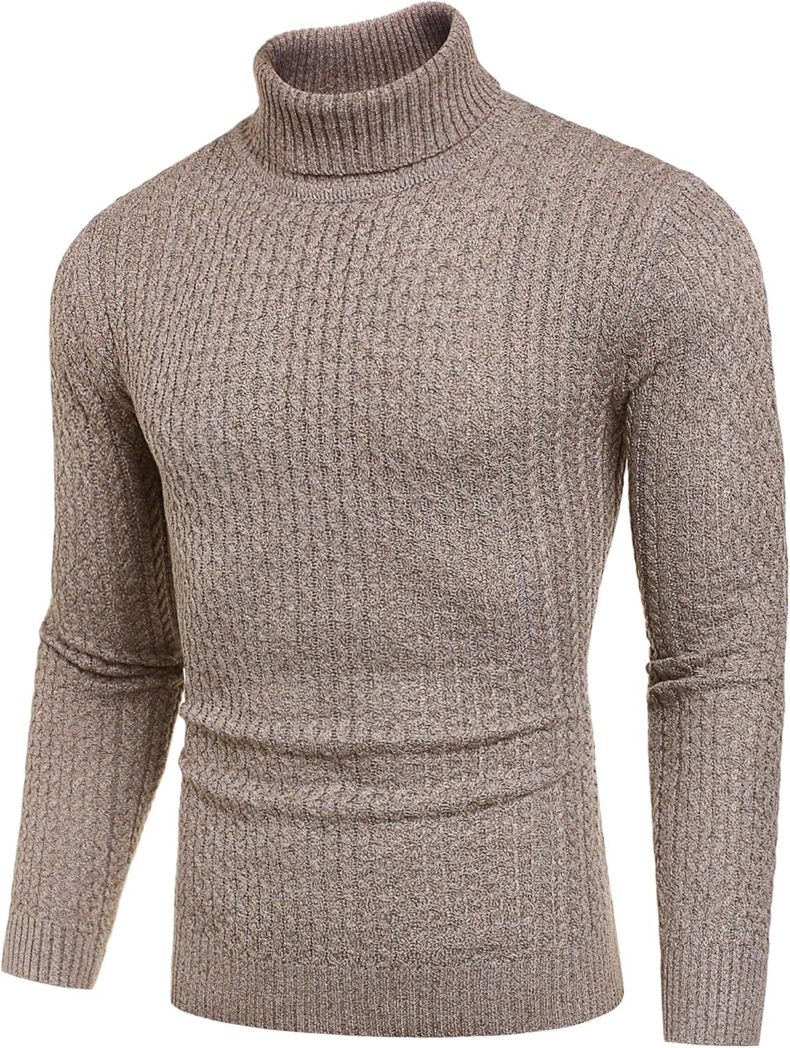 COOFANDY Men's Slim Fit Turtleneck Sweater Casual Knitted Twisted Pullover Solid Sweaters