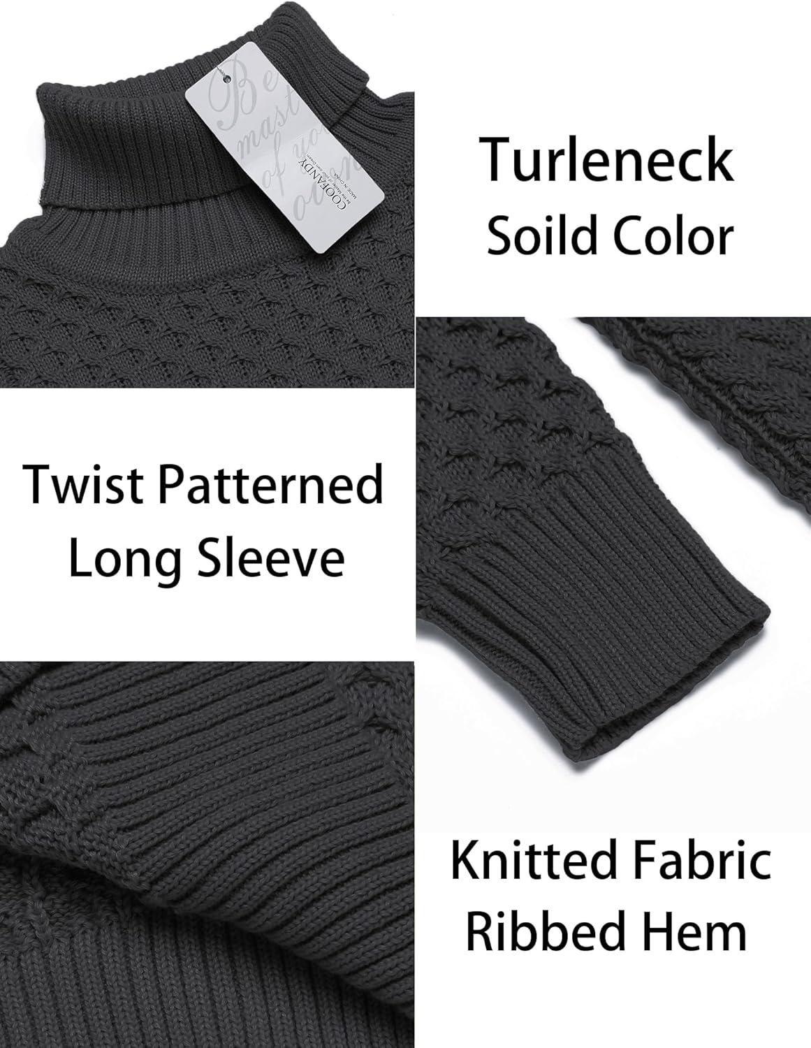 COOFANDY Men’s Slim Fit Turtleneck Sweater Casual Knitted Twisted Pullover Solid Sweaters(Dark Gray)