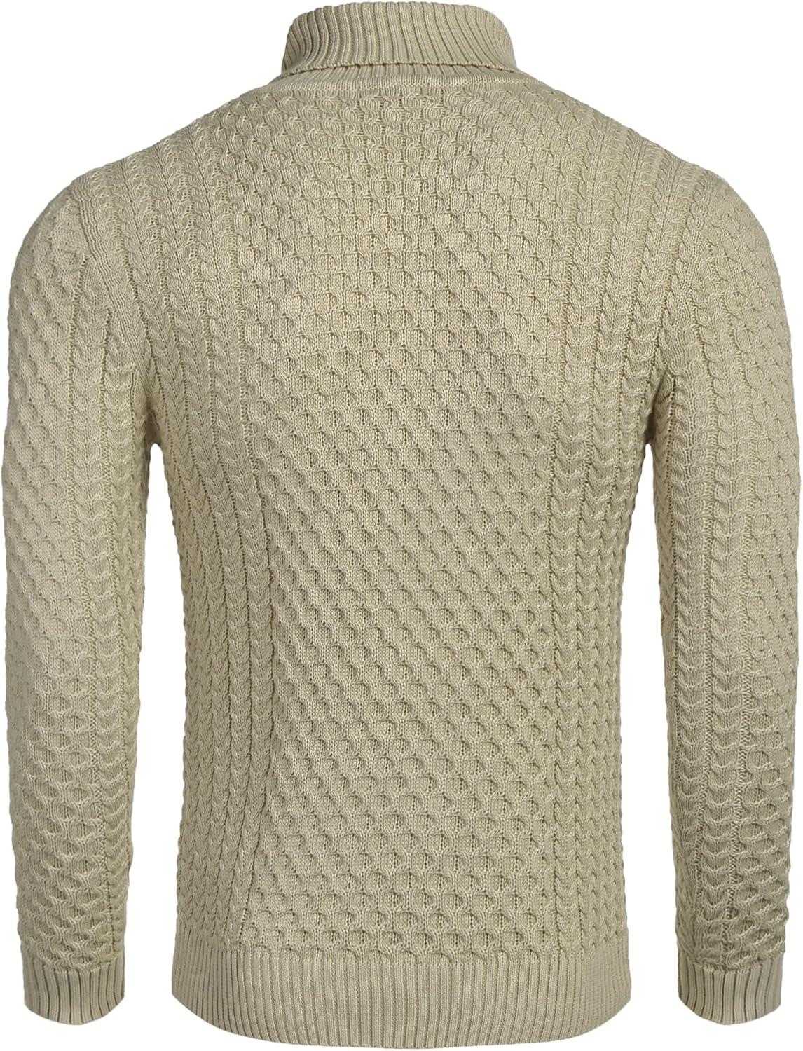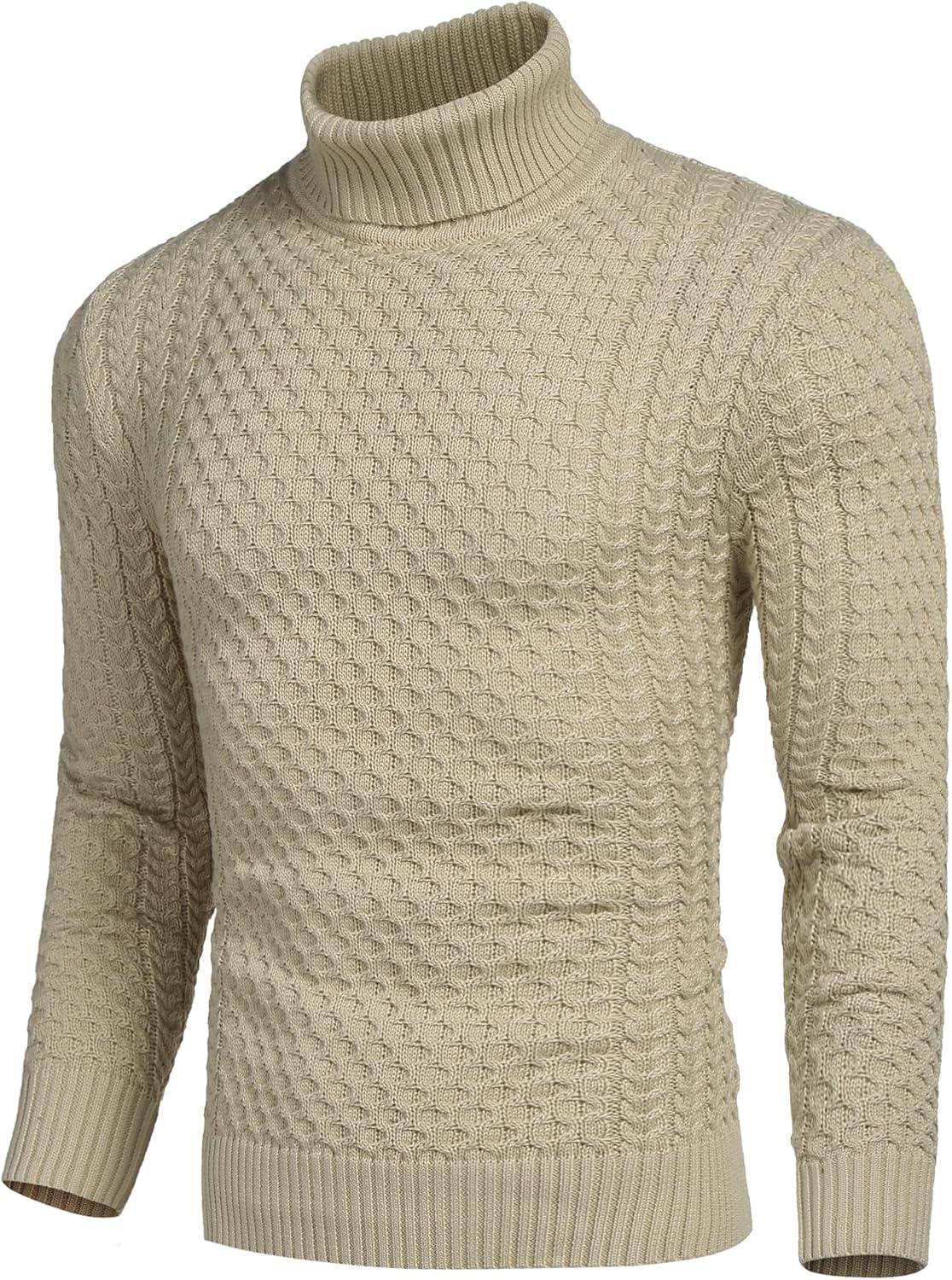 COOFANDY Men's Slim Fit Turtleneck Sweater Casual Knitted Twisted Pullover Solid Sweaters