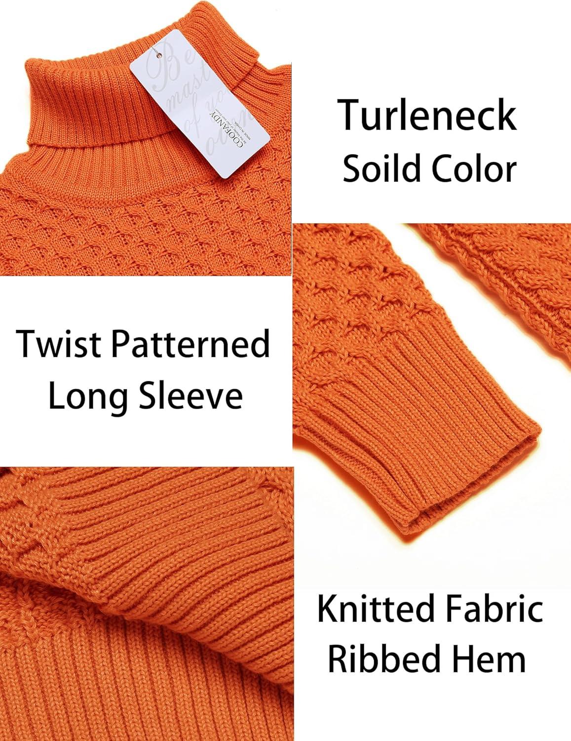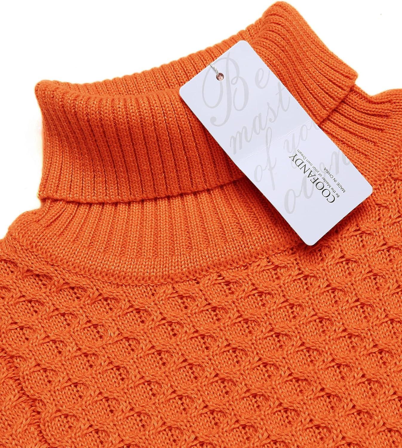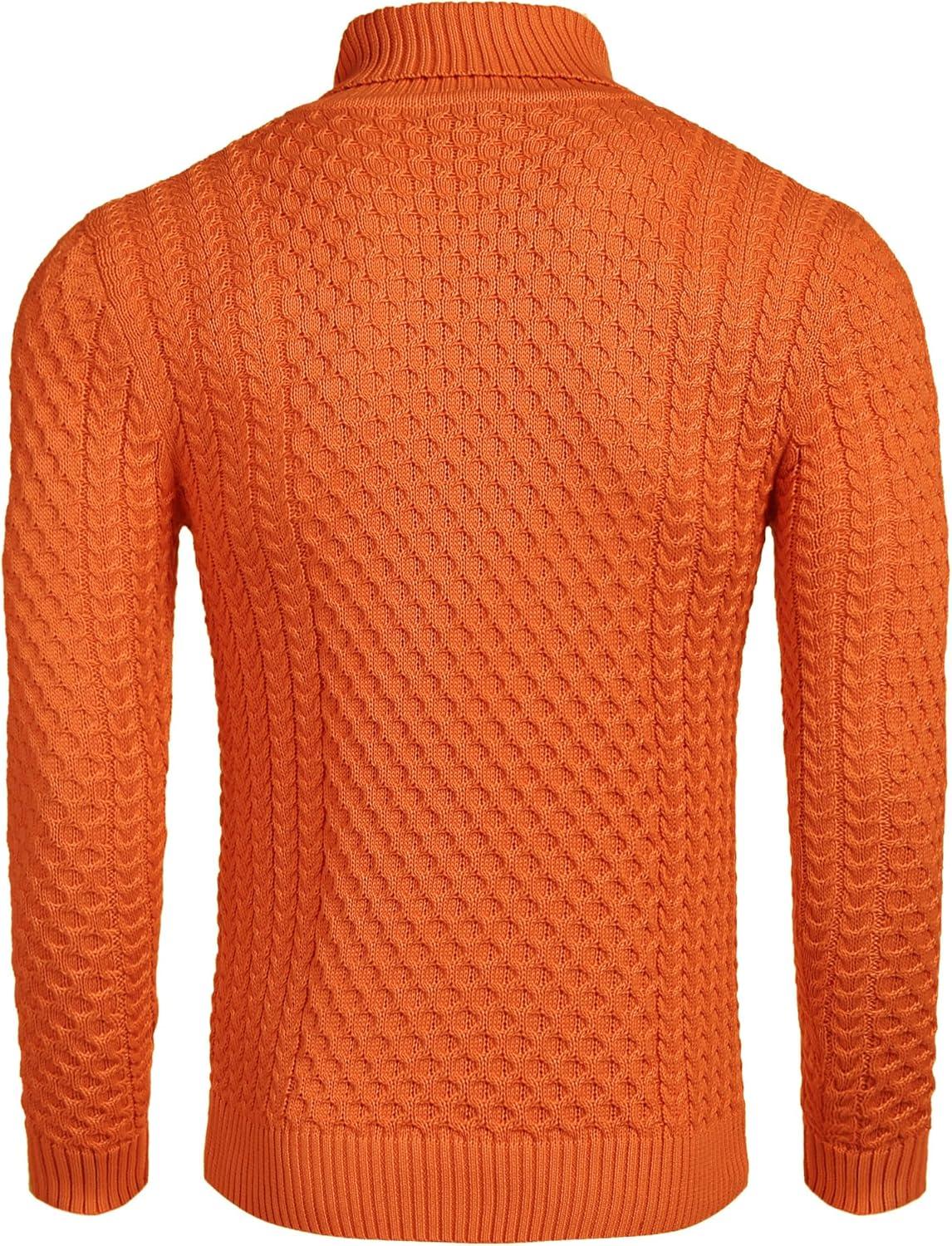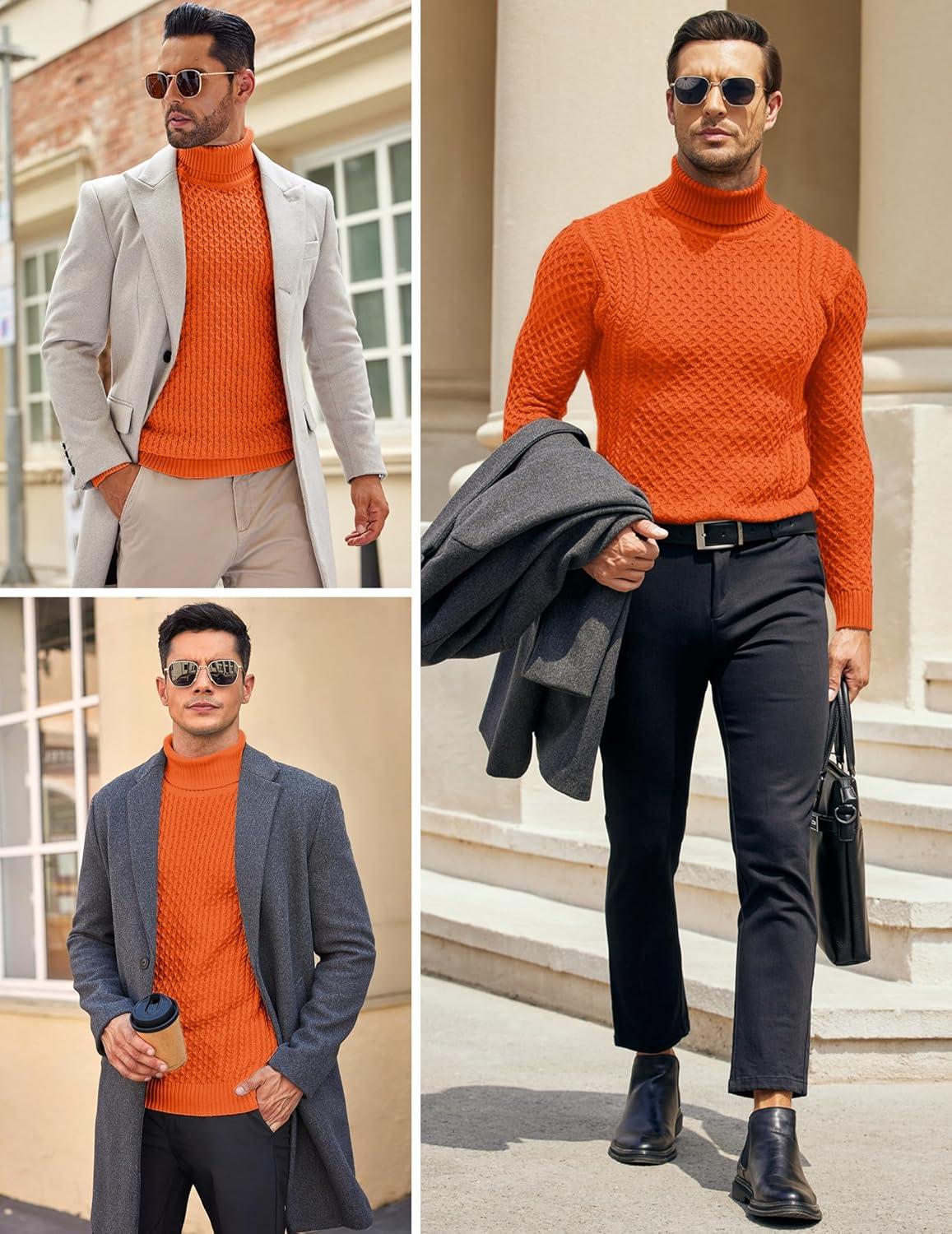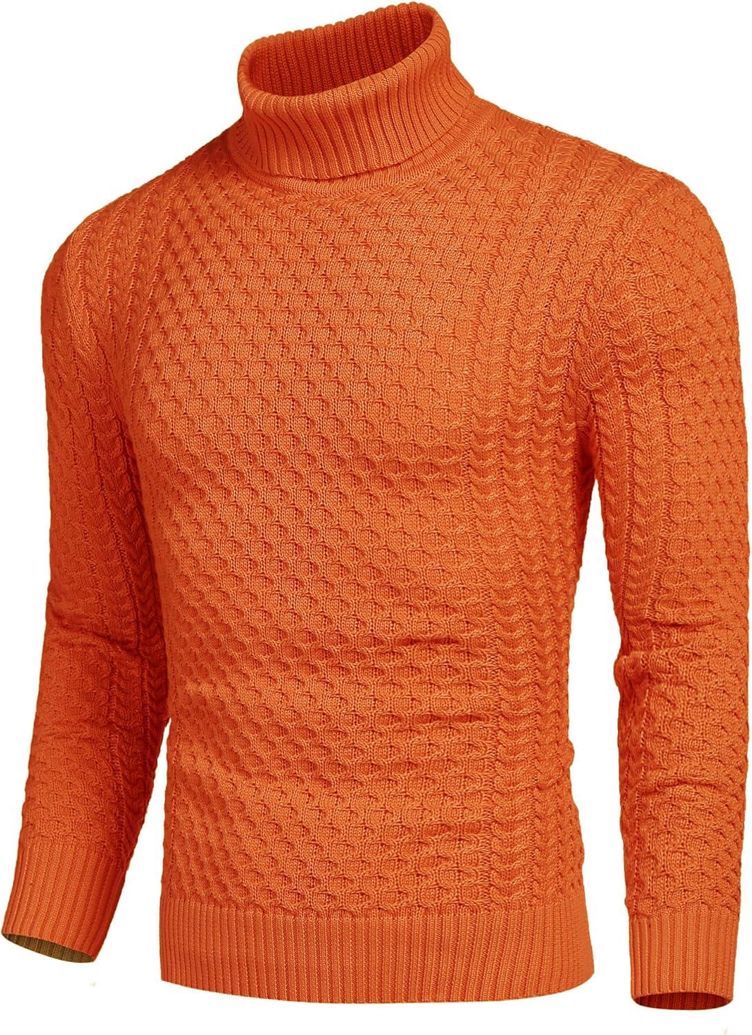 COOFANDY Men’s Slim Fit Turtleneck Sweater Casual Knitted Twisted Pullover Solid Sweaters(Orange)