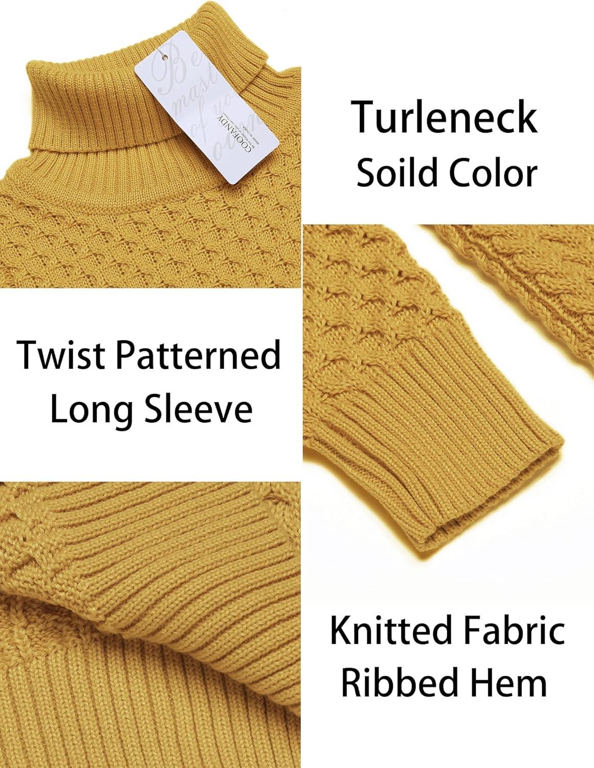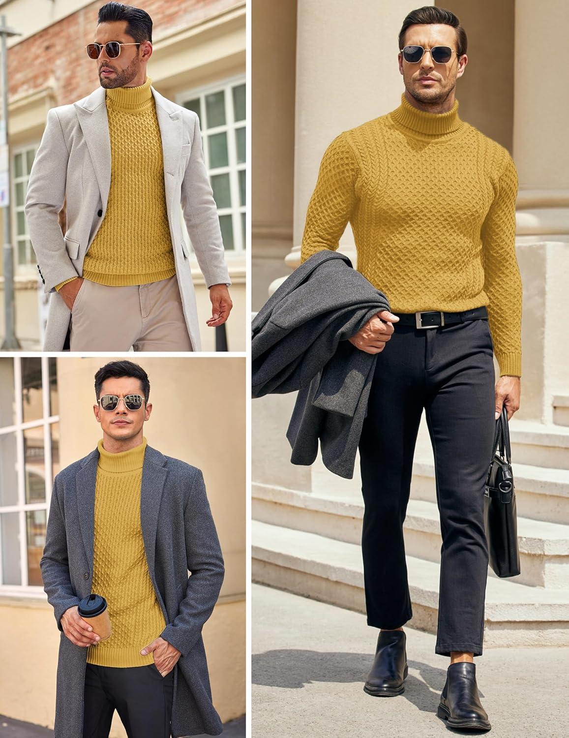 COOFANDY Men’s Slim Fit Turtleneck Sweater Casual Knitted Twisted Pullover Solid Sweaters(Yellow)