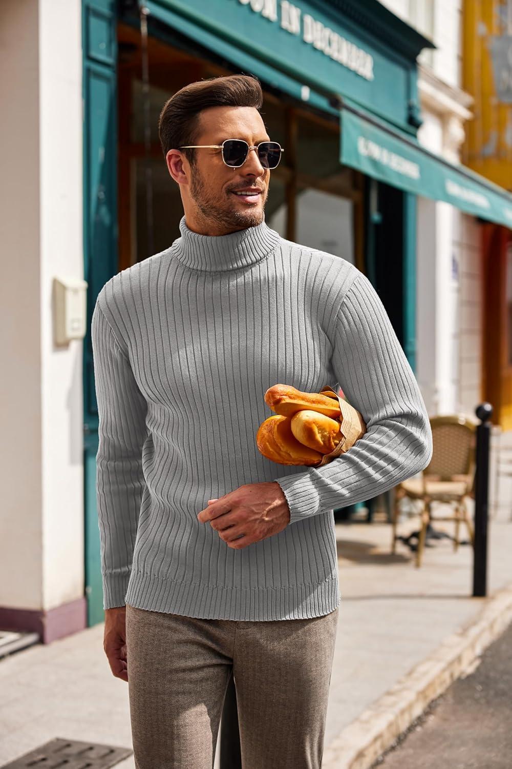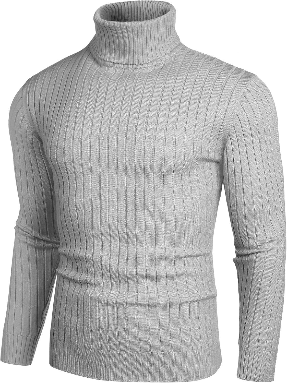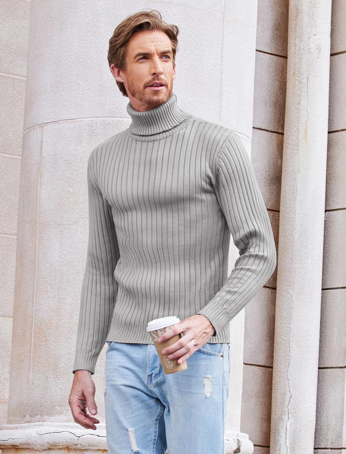 COOFANDY Men’s Slim Fit Turtleneck Sweater Casual Pullover Sweater Lightweight Ribbed Sweater(01_gray)