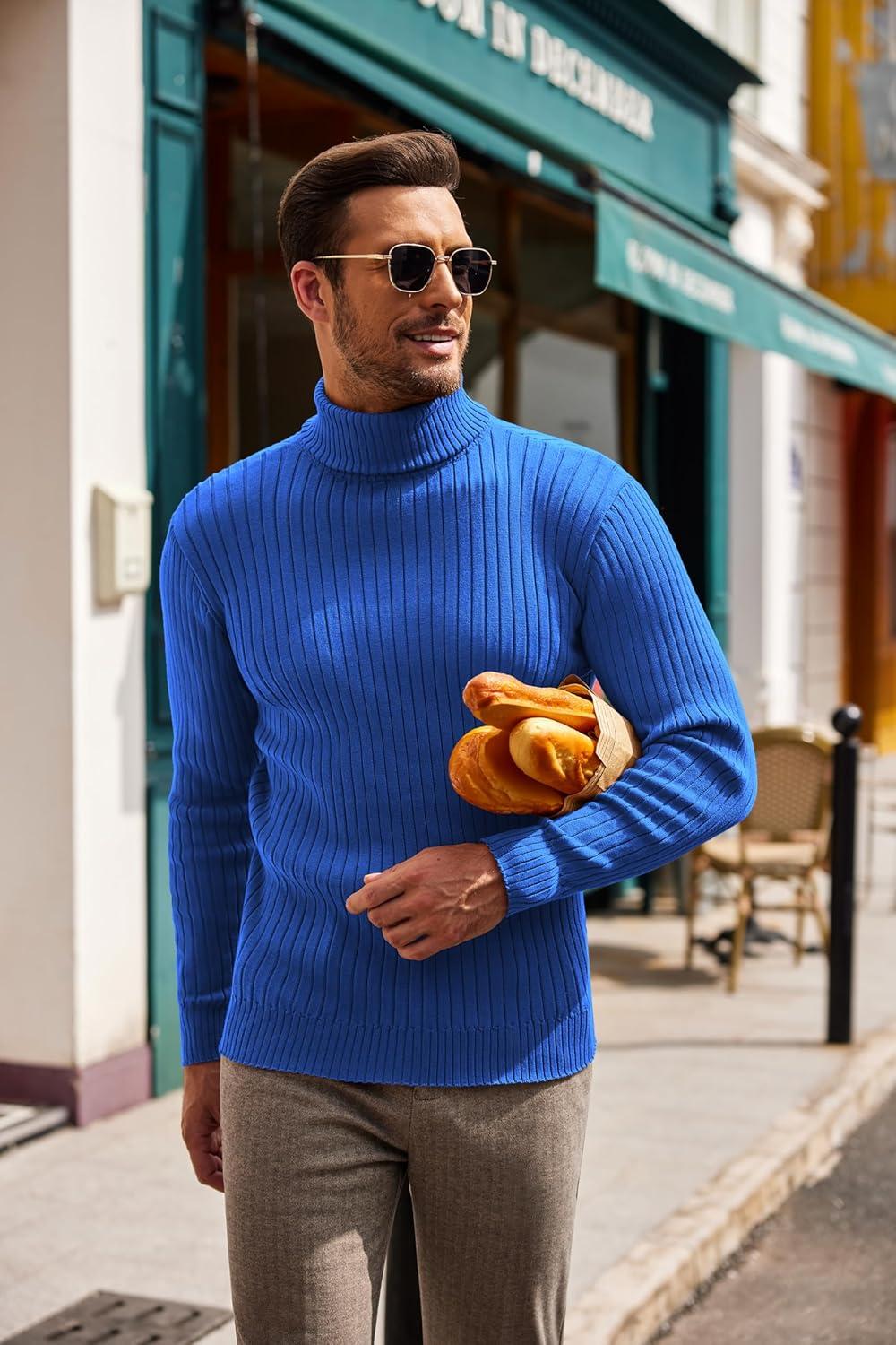 COOFANDY Men’s Slim Fit Turtleneck Sweater Casual Pullover Sweater Lightweight Ribbed Sweater(Blue)