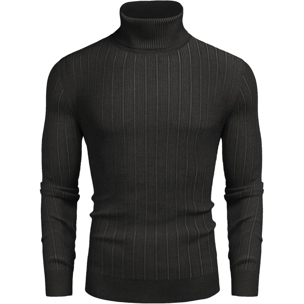 COOFANDY Men’s Slim Fit Turtleneck Sweater Casual Pullover Sweater Lightweight Ribbed Sweater(Charcoal Grey)