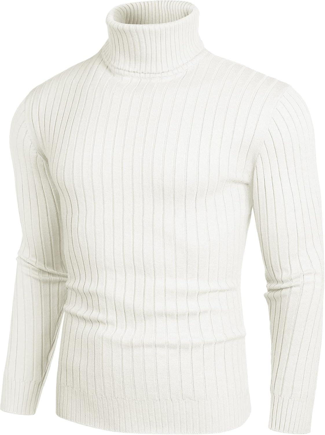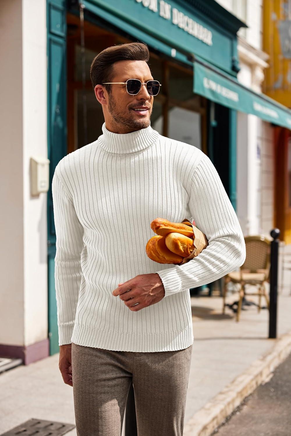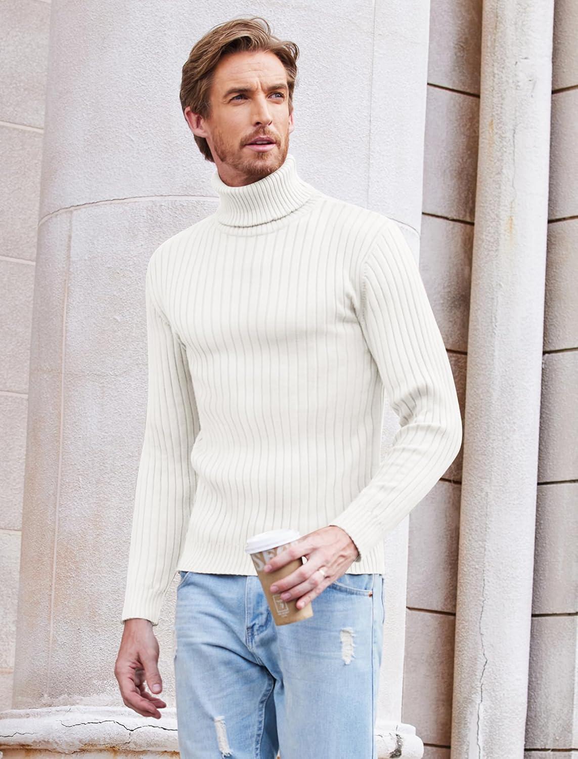 COOFANDY Men’s Slim Fit Turtleneck Sweater Casual Pullover Sweater Lightweight Ribbed Sweater(White)