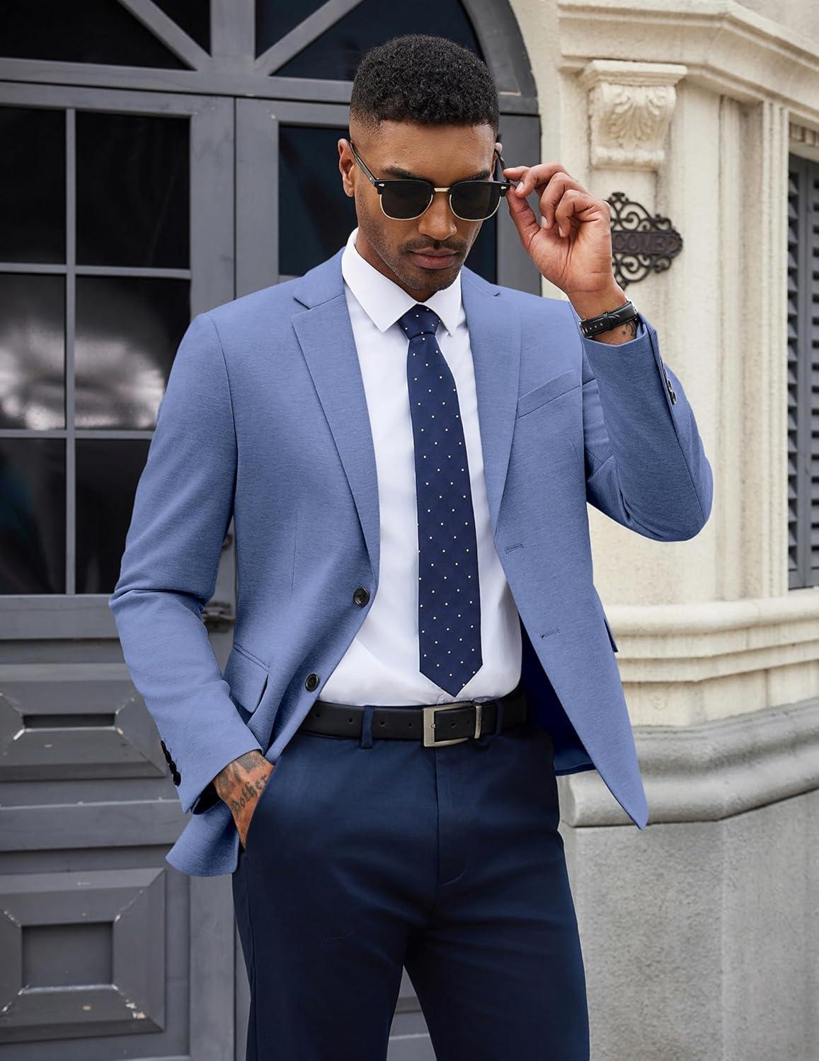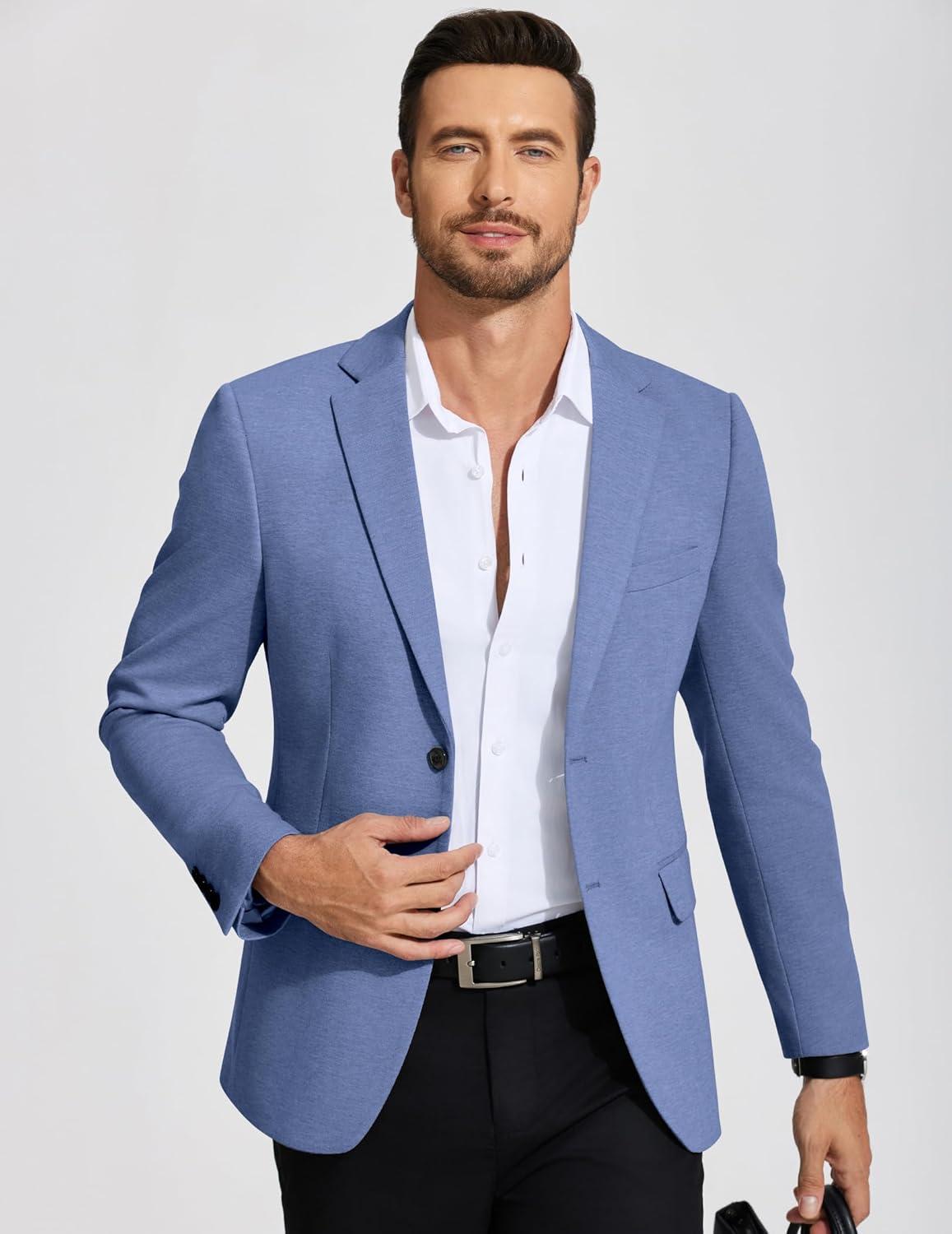 COOFANDY Mens Casual Blazer Knit Sport Coat Lightweight Two Button Suit Jacket(Blue)