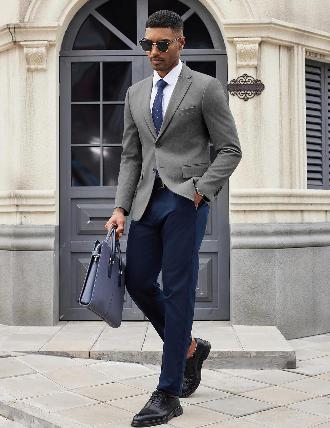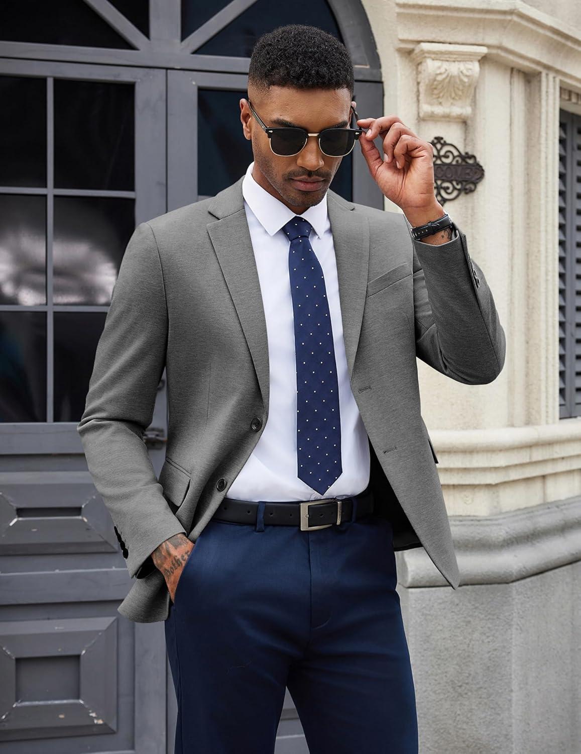 COOFANDY Mens Casual Blazer Knit Sport Coat Lightweight Two Button Suit Jacket(Grey)