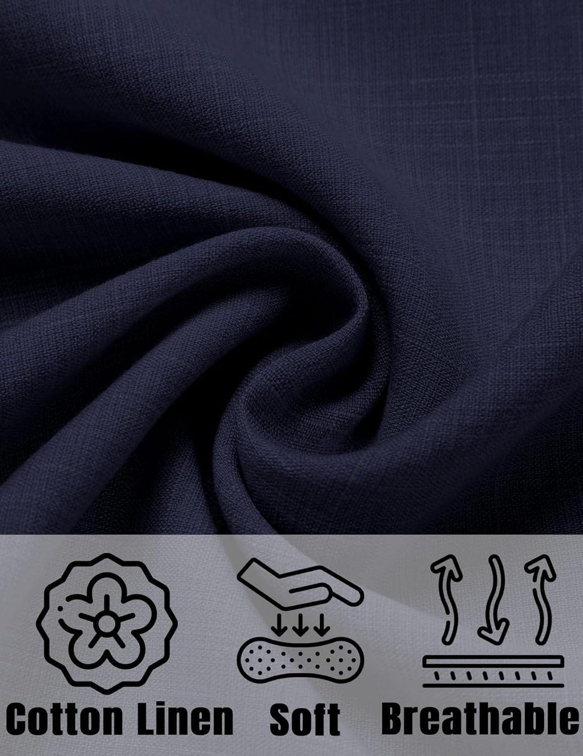 COOFANDY Men’s Linen Shirts Short Sleeve Casual Shirts Button Down Shirt for Men Beach Summer Wedding Shirt(Navy Blue)