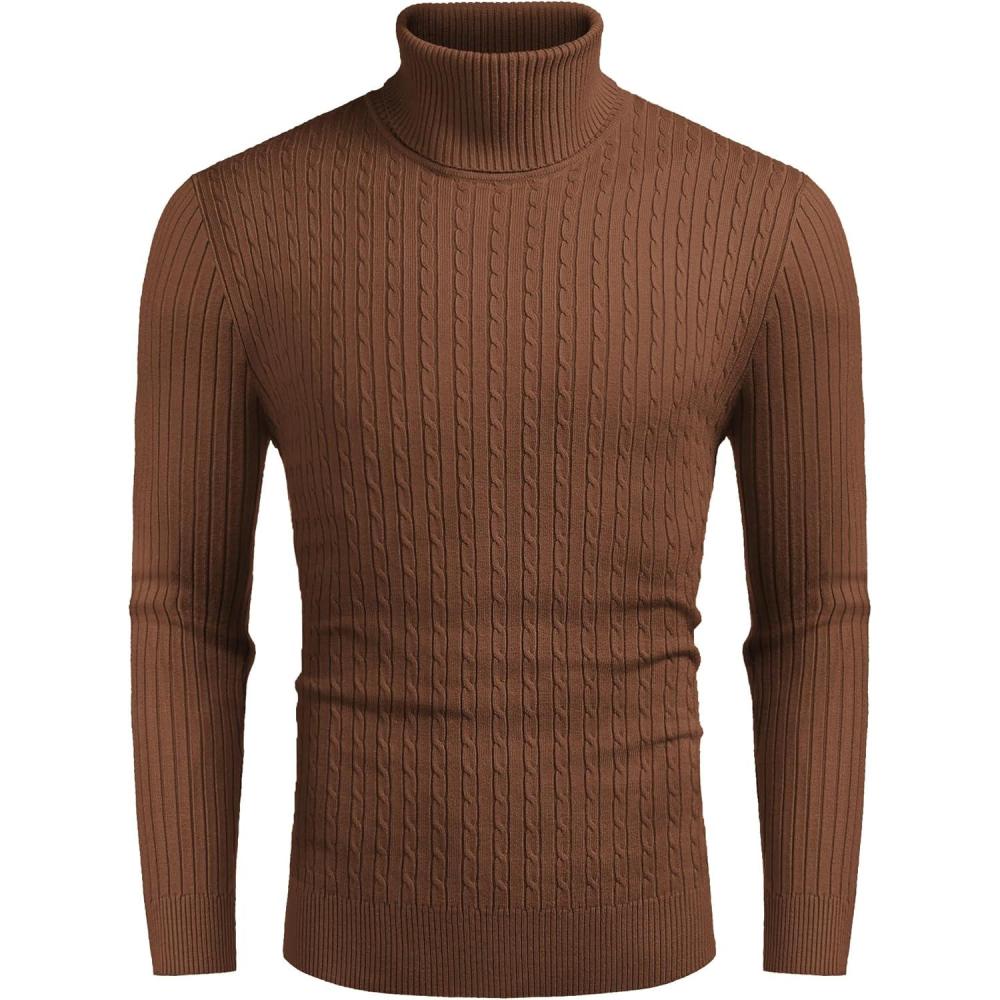 COOFANDY Men’s Slim Fit Turtleneck Sweater Casual Twist Patterned Pullover Knitted Sweaters(Brown)