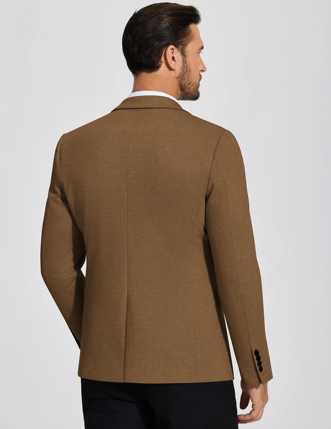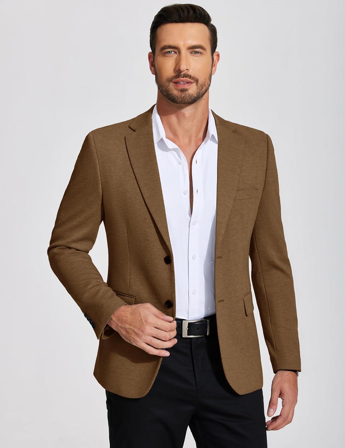 COOFANDY Mens Casual Blazer Knit Sport Coat Lightweight Two Button Suit Jacket(Brown)