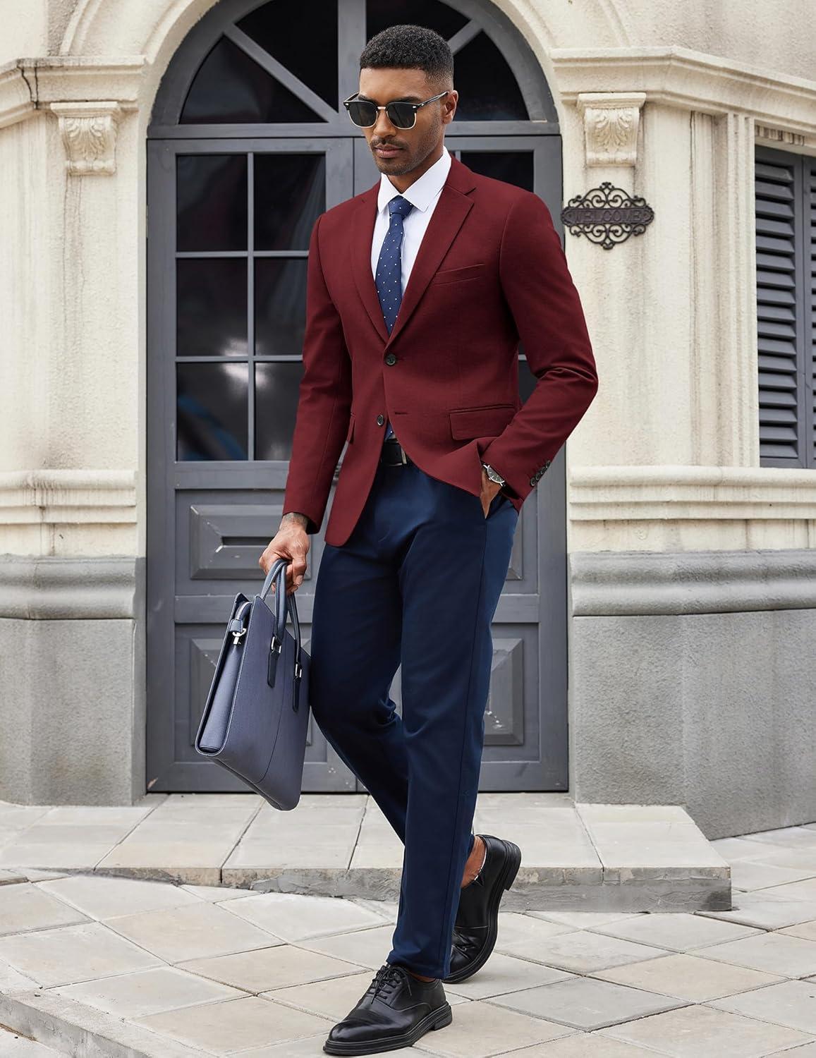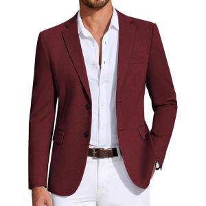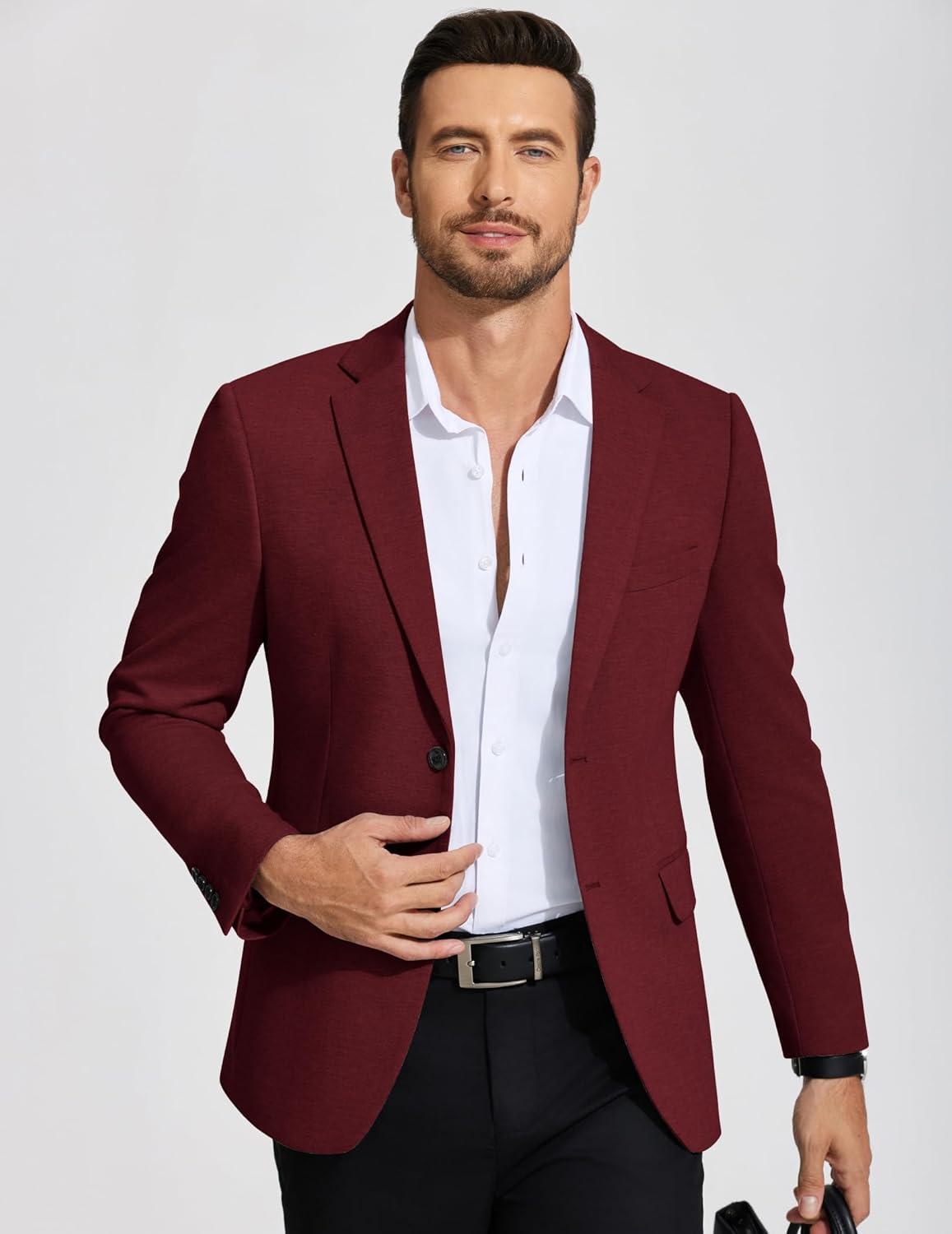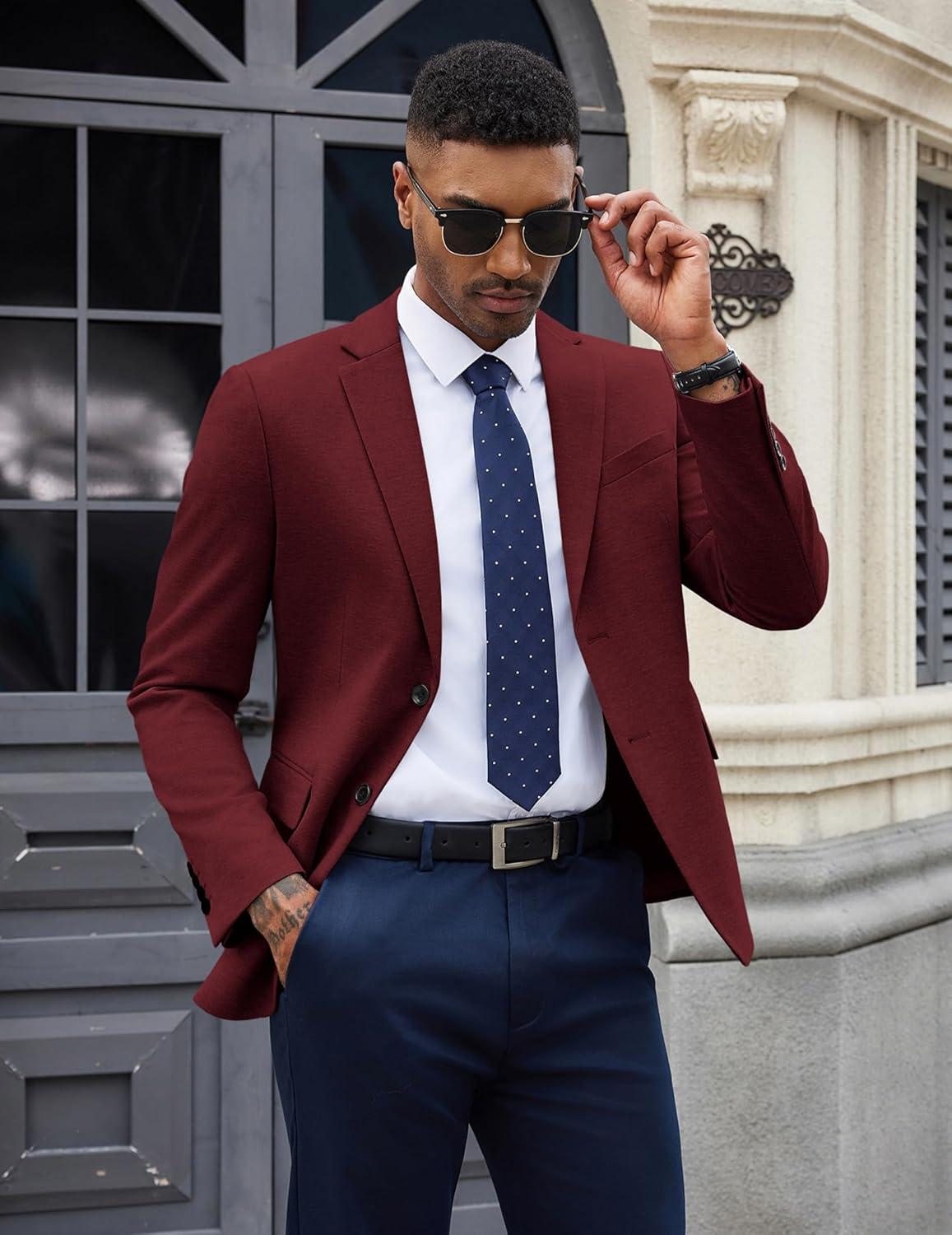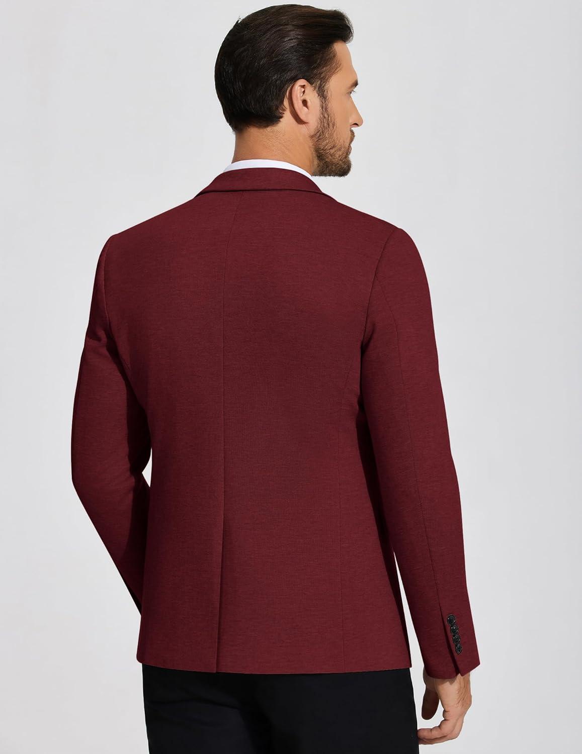 COOFANDY Mens Casual Blazer Knit Sport Coat Lightweight Two Button Suit Jacket(Wine Red)