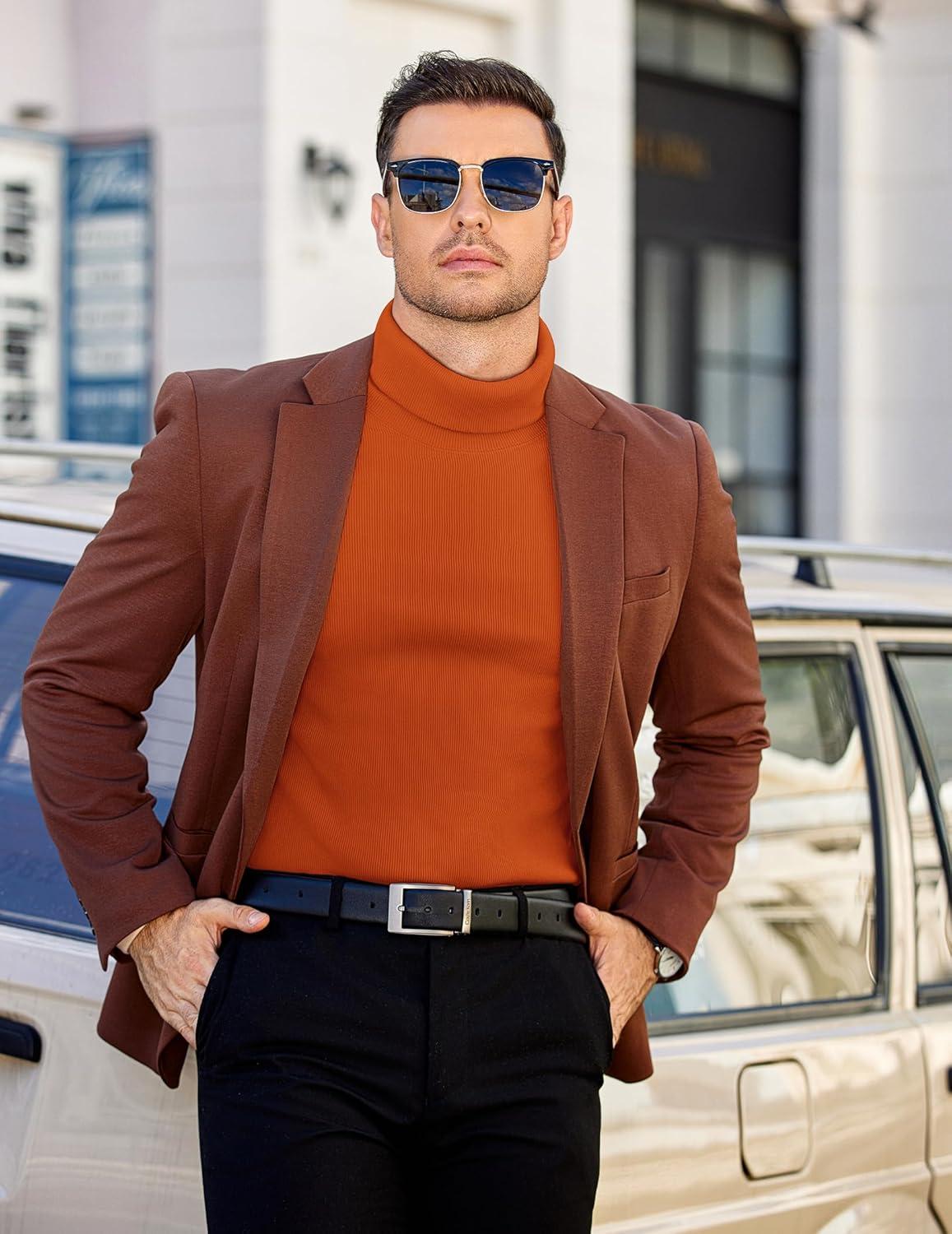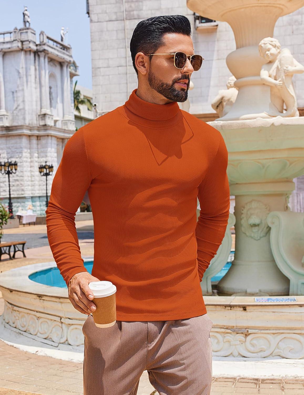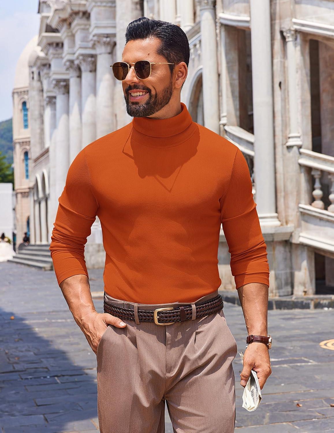 COOFANDY Men’s Slim Fit Turtleneck Sweater Long Sleeve Ribbed Turtle Neck Casual Lightweight Basic Pullover Sweaters(Brown)