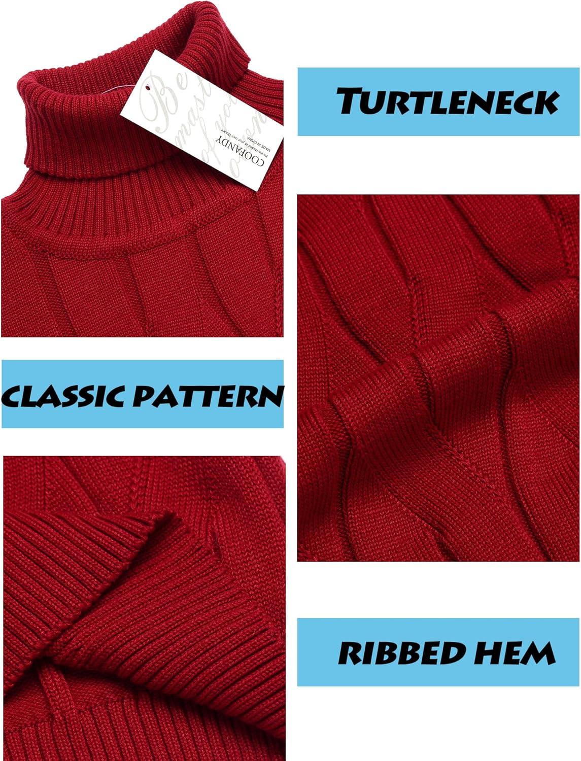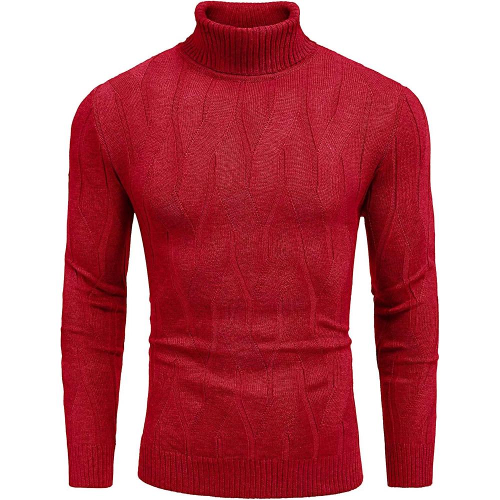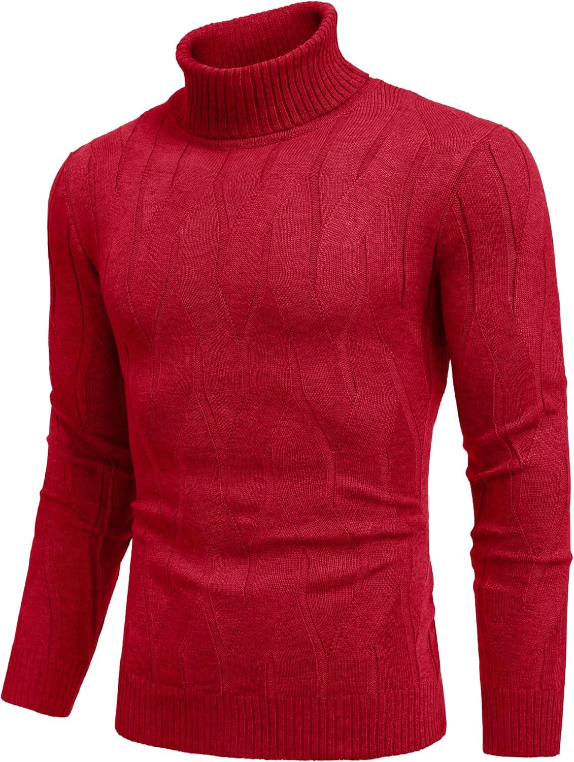 COOFANDY Men’s Slim Fit Turtleneck Sweaters Casual Cable Knitted Soft Pullover Sweaters(01-red)