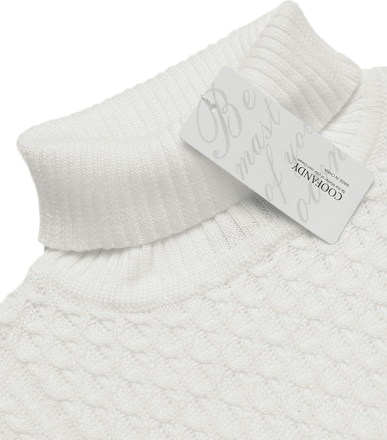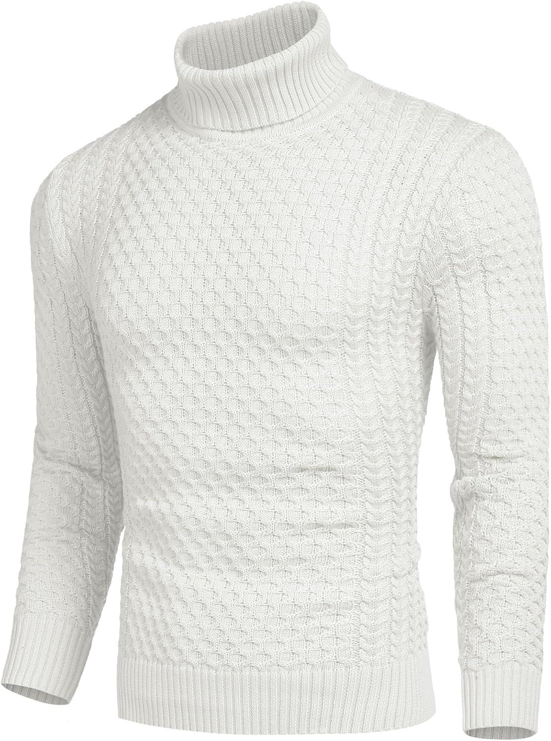 COOFANDY Men’s Slim Fit Turtleneck Sweaters Casual Cable Knitted Soft Pullover Sweaters(A-white)