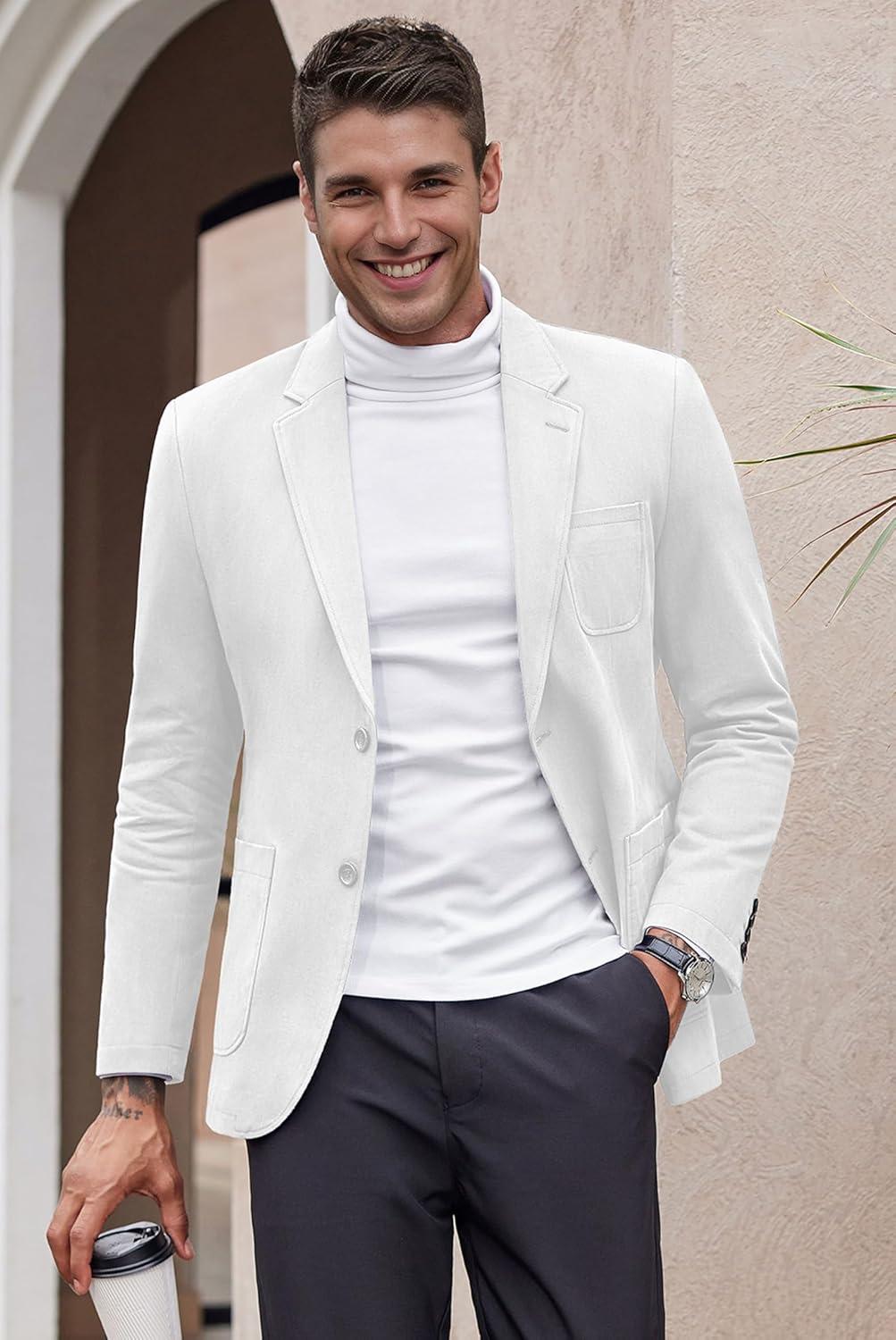 COOFANDY Men’s Smart Wash Blazer Regular Fit Cotton Sport Coat Casual Suit Jacket(White)
