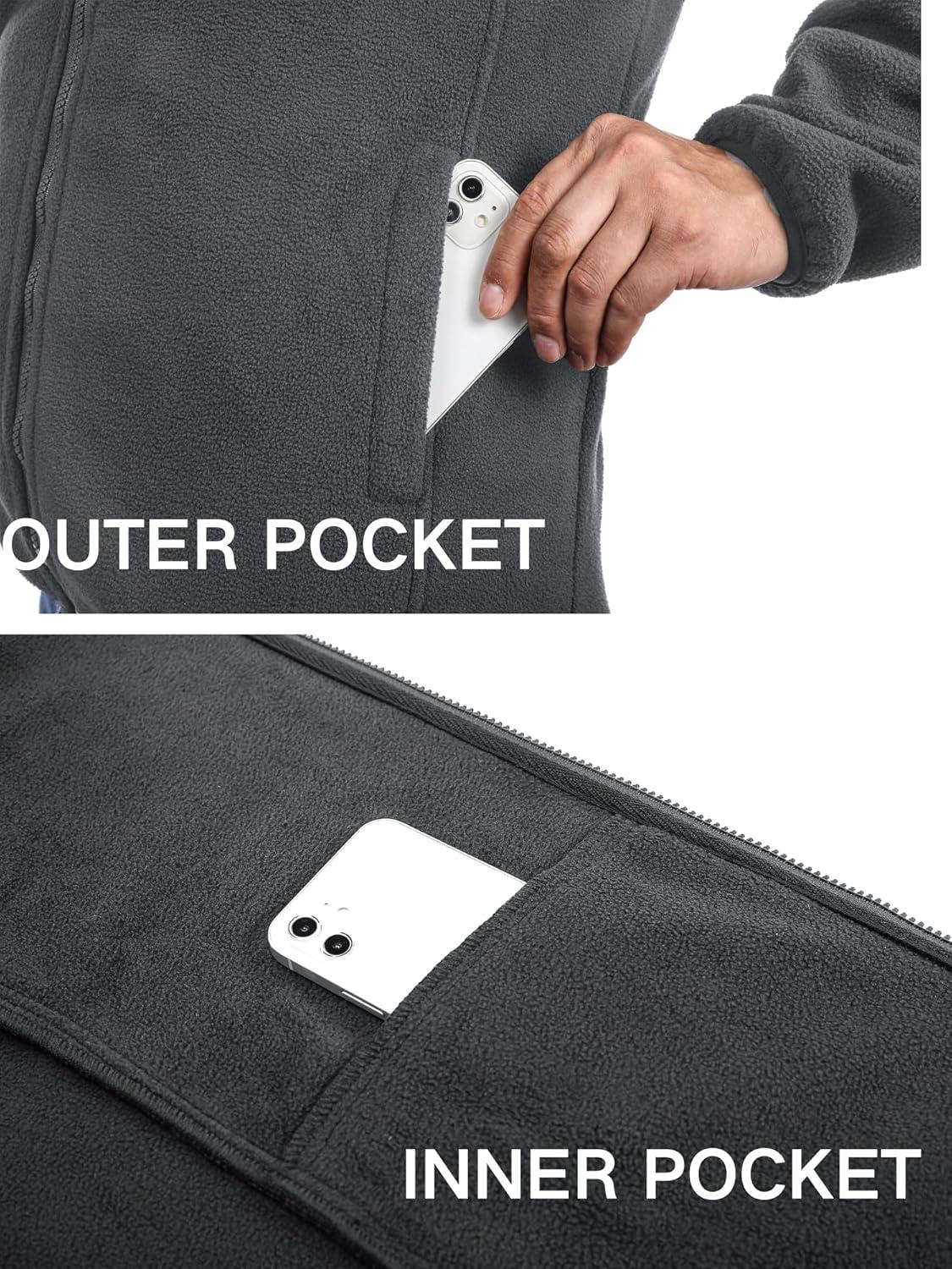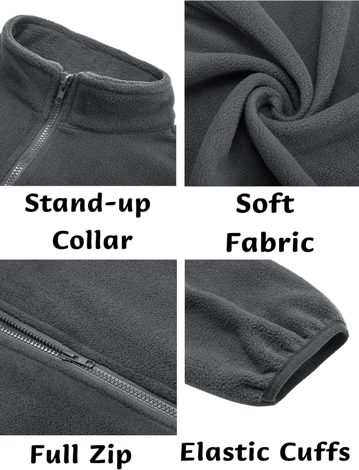 COOFANDY Men’s Soft Polar Fleece Jacket Lightweight Full Zip Jackets Casual Outdoor Warm Jackets Coats with Pockets(Dark Grey)