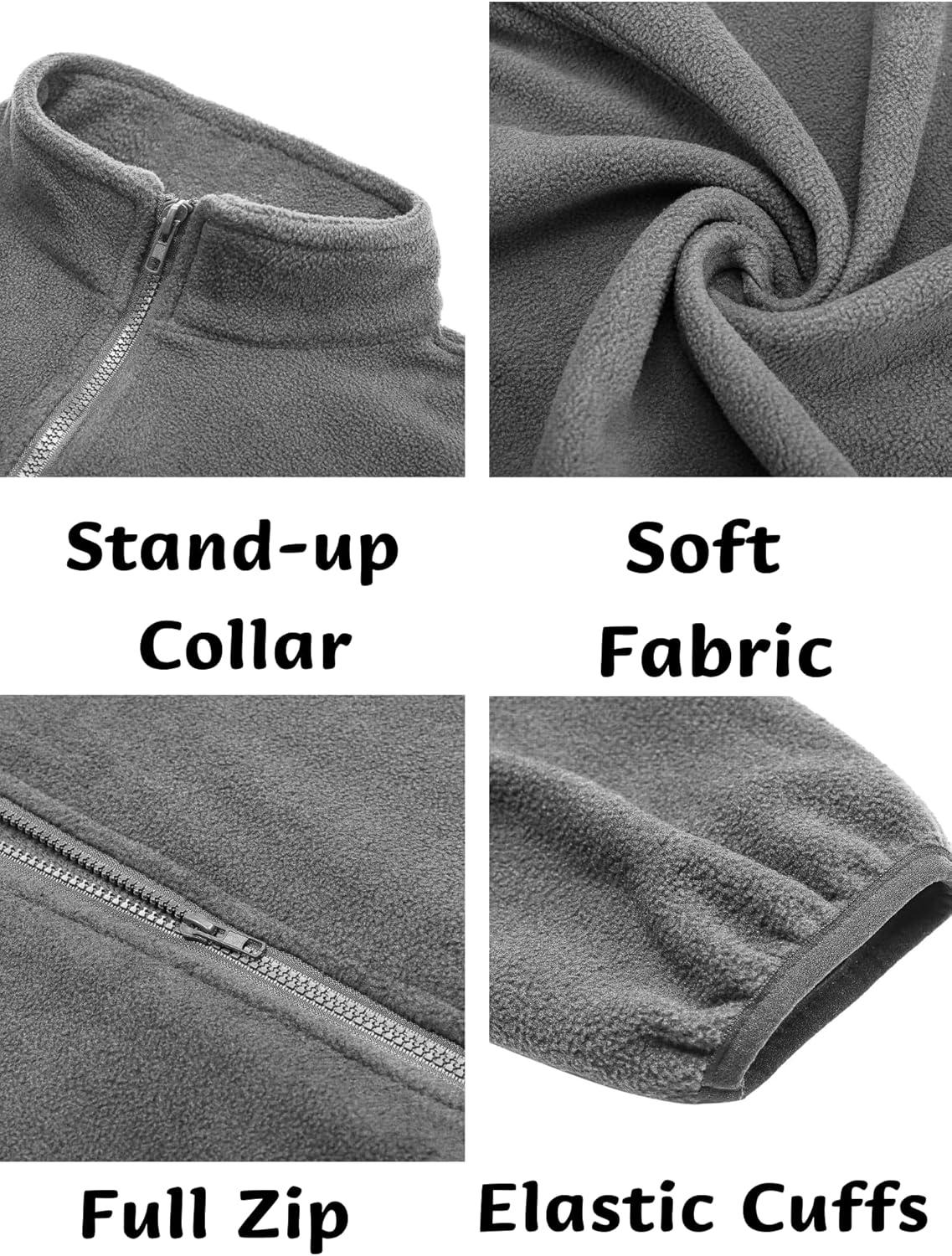 COOFANDY Men’s Soft Polar Fleece Jacket Lightweight Full Zip Jackets Casual Outdoor Warm Jackets Coats with Pockets(Medium Grey)