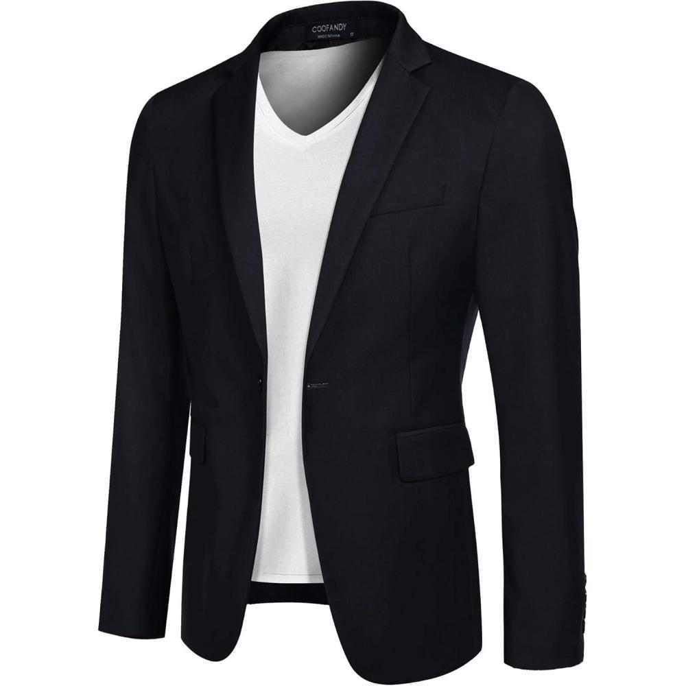 COOFANDY Mens Sport Coat Casual Blazer One Button Business Suit Jacket(Dark Blue)