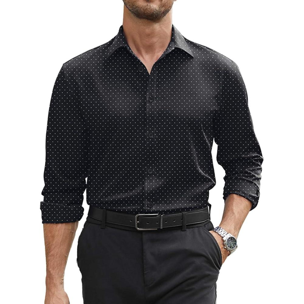 COOFANDY Mens Stretch Dress Shirts Long Sleeve Button Down Shirt Regular Fit Formal Business Shirts(Black-polka Dots)