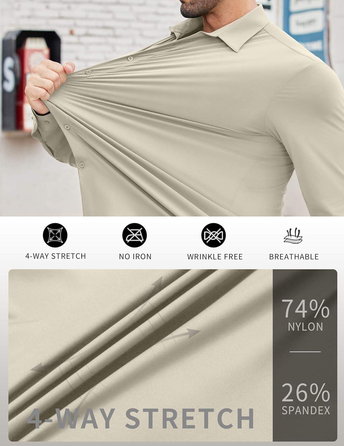 COOFANDY Mens Stretch Dress Shirts Muscle Fit Wrinkle Free Long Sleeve Button Down Shirt Business Casual Shirts(Khaki)