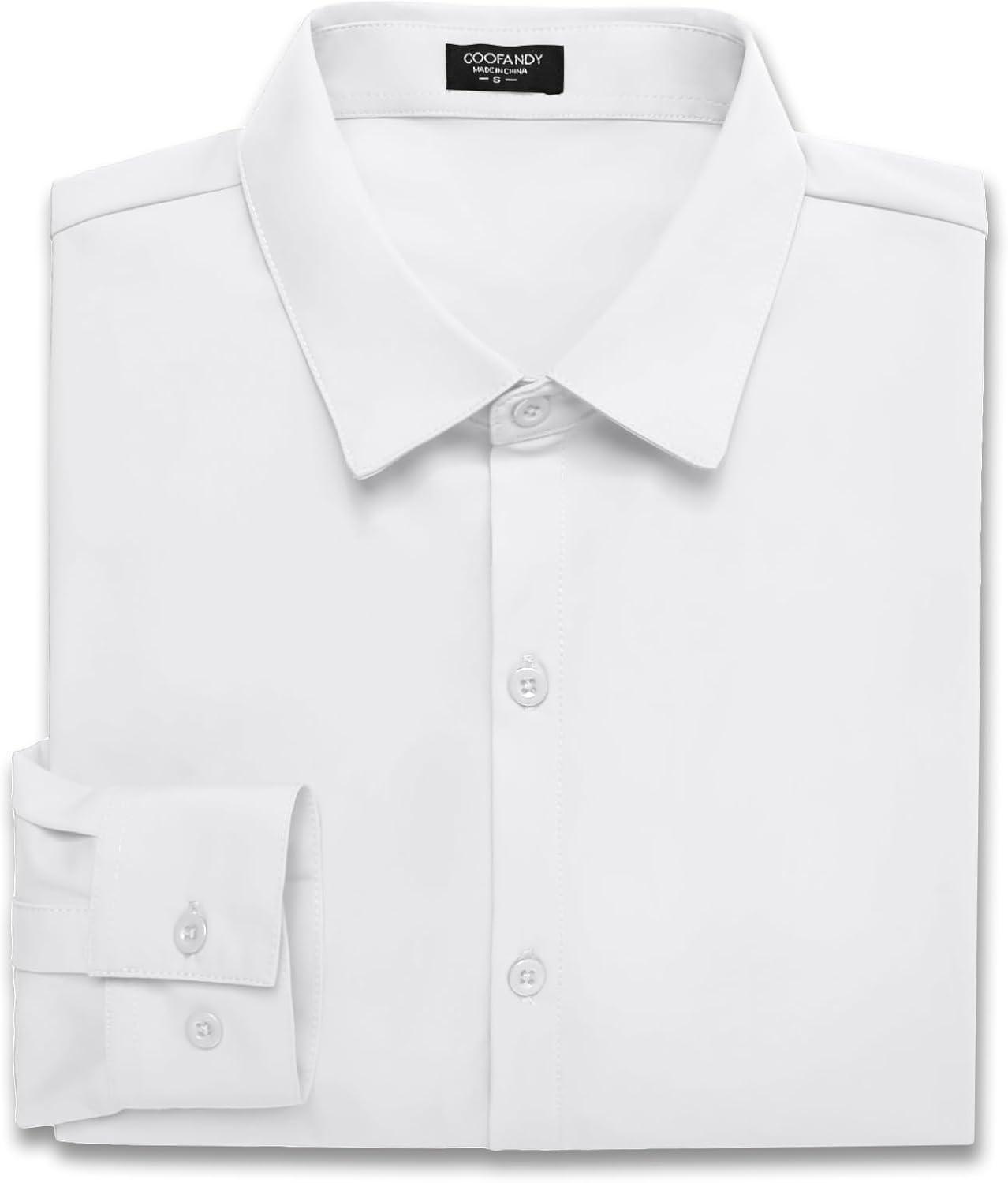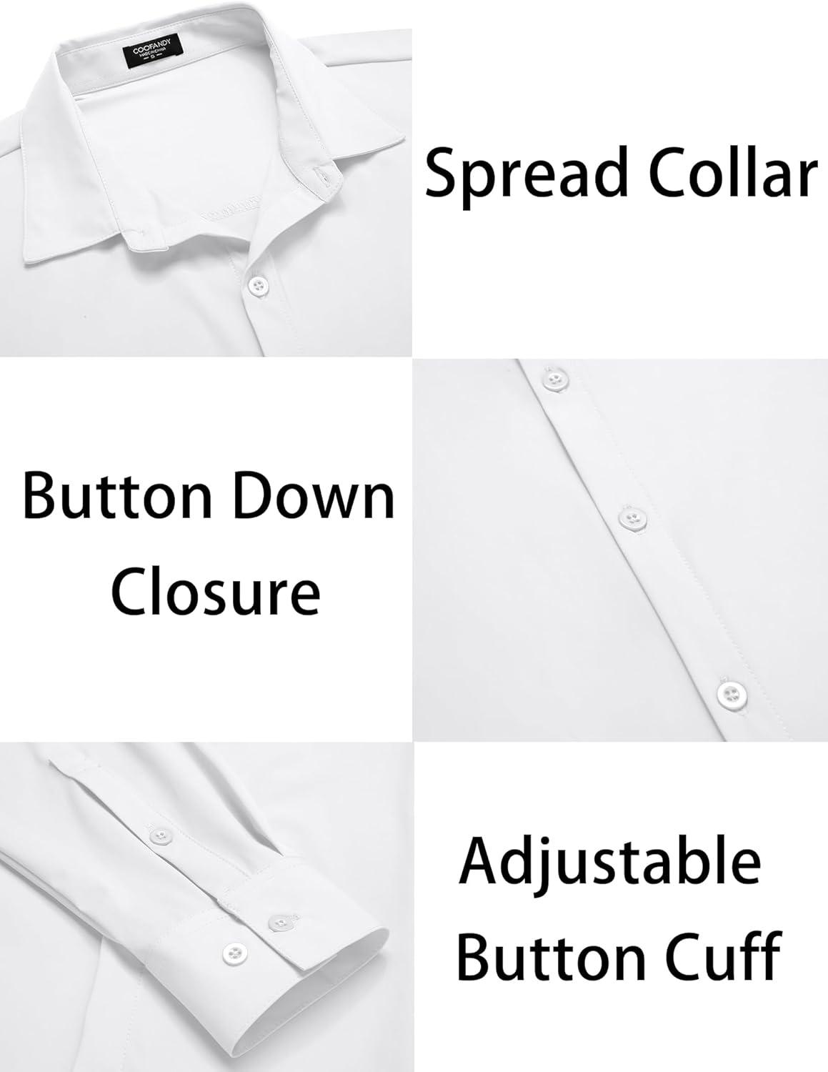 COOFANDY Men’s Stretch Dress Shirts Wrinkle Free Long Sleeve Button Down Shirts Business Casual Button Up Shirt White