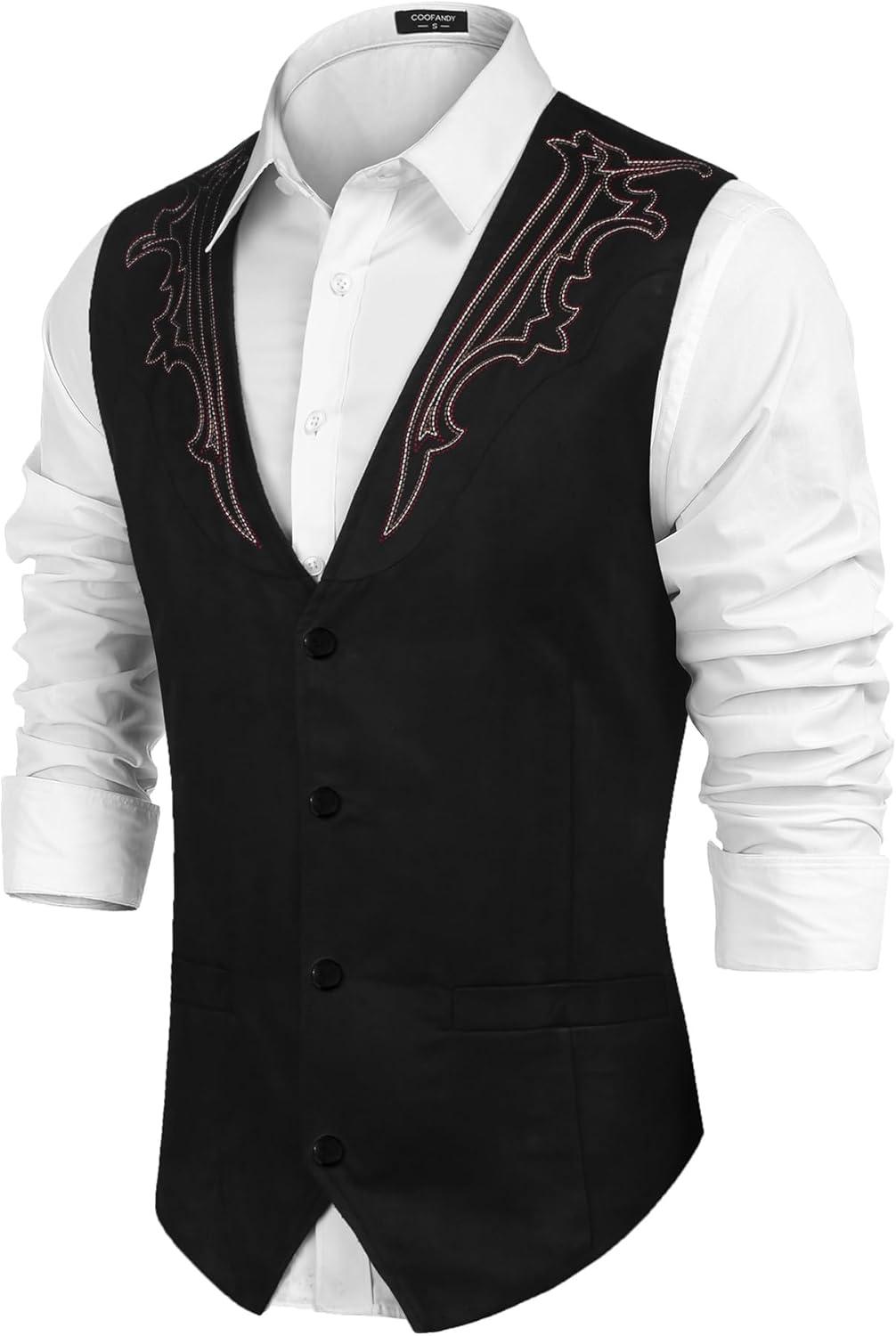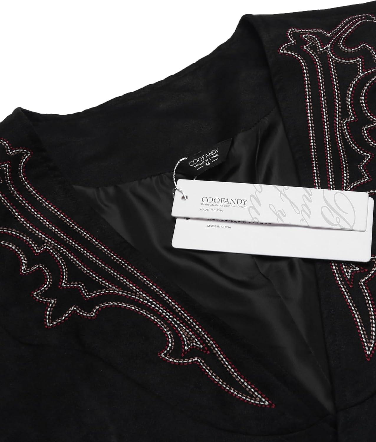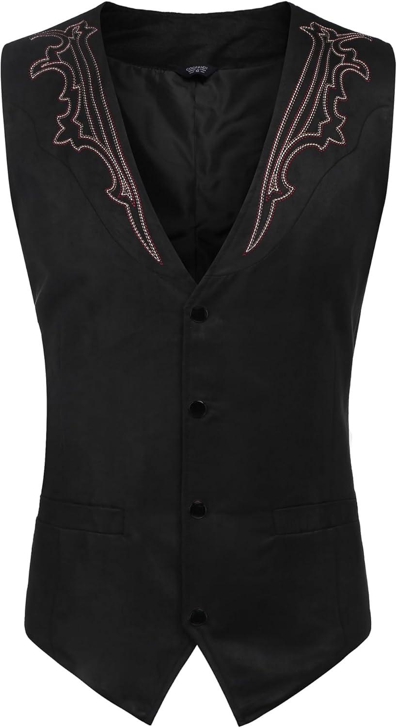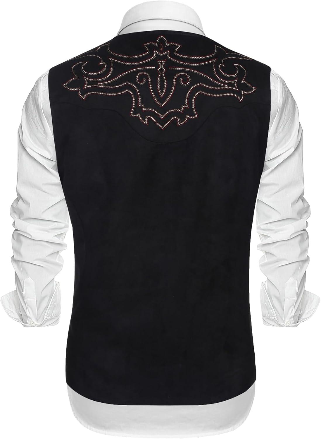 COOFANDY Men’s Suede Leather Vest Cowboy Western Waistcoat Casual Slim Fit Suit Vest(Black (With Pattern))
