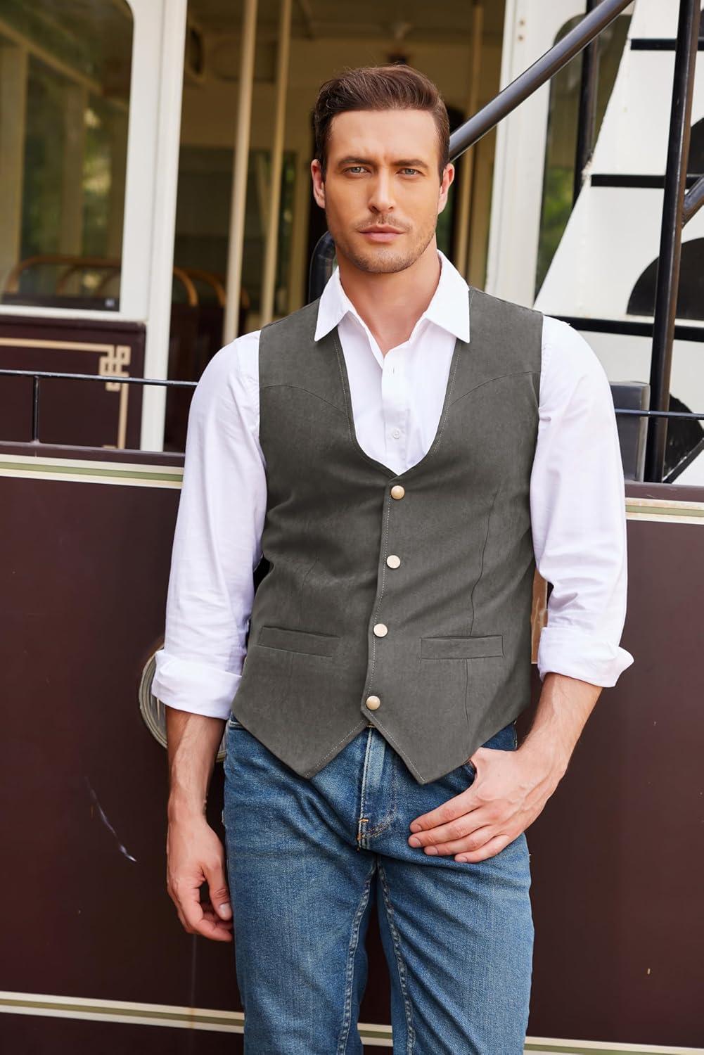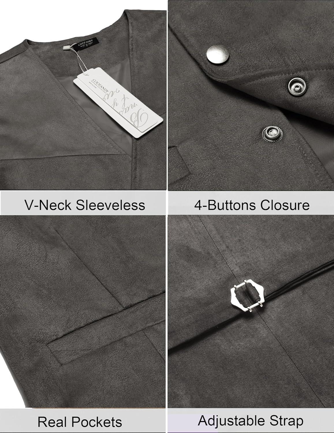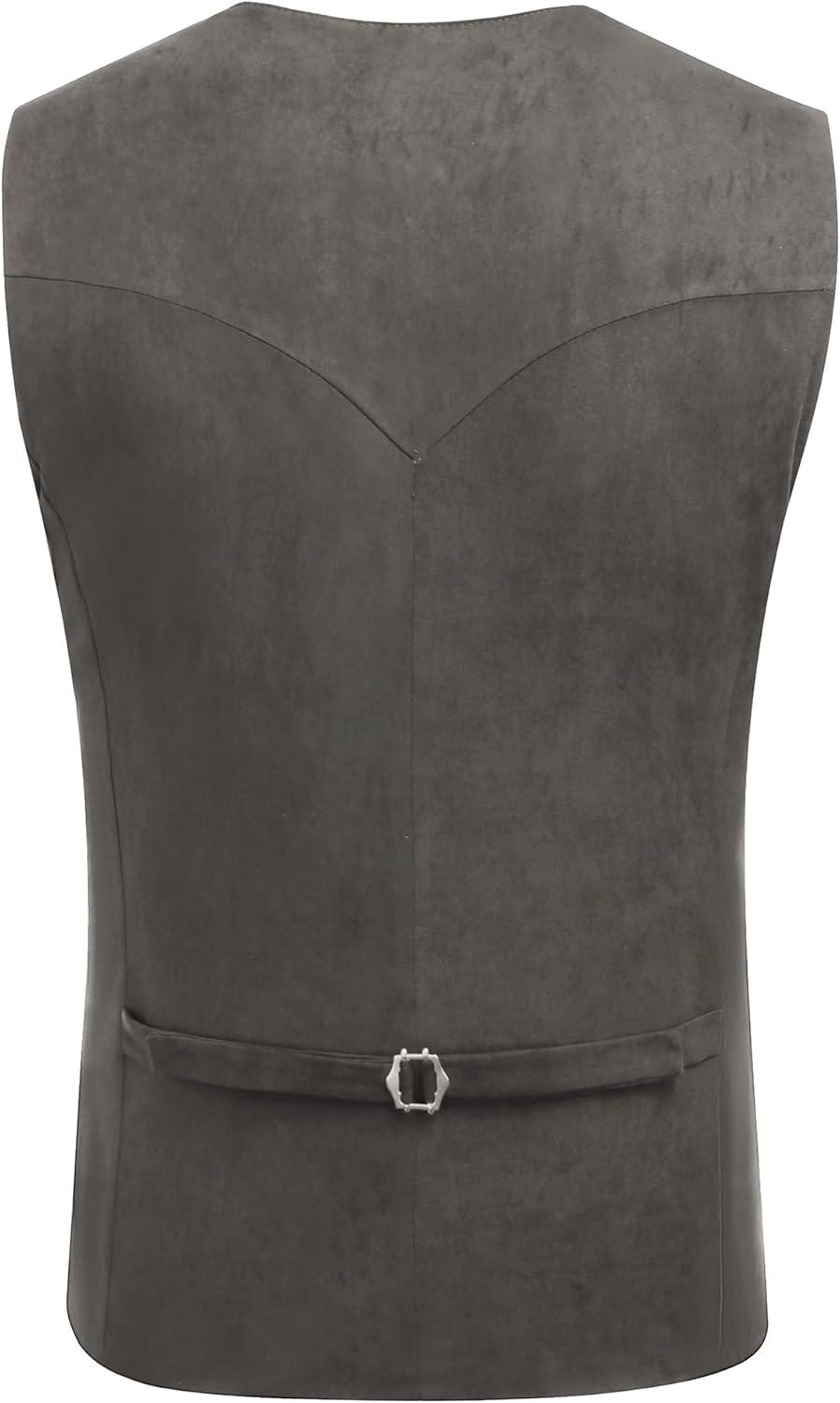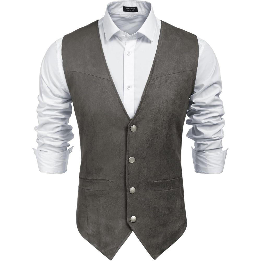 COOFANDY Men’s Suede Leather Vest Cowboy Western Waistcoat Casual Slim Fit Suit Vest(Grey)