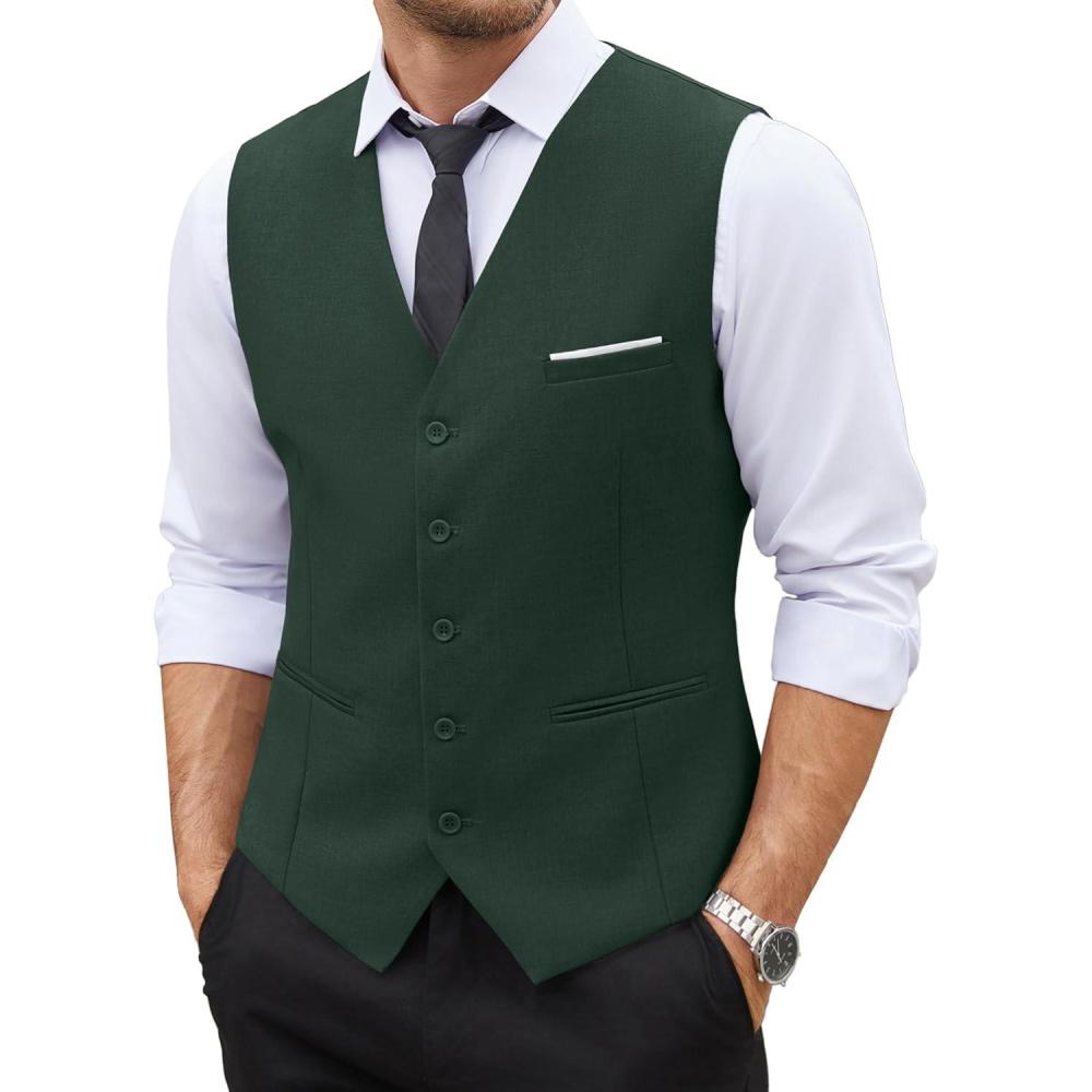 COOFANDY Men’s Suit Vest Slim Fit Business Formal Waistcoat Casual Dress Vest(Green)