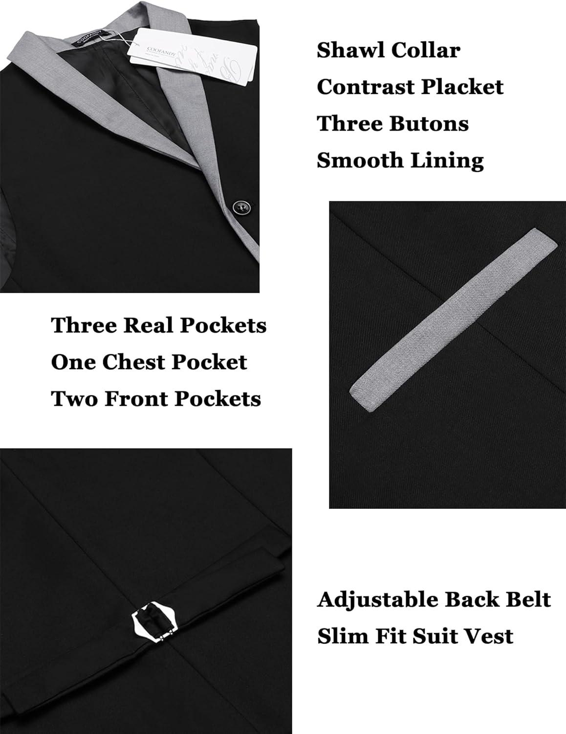 COOFANDY Men’s Suit Vest Slim Fit Formal Business Dress Vest Casual Wedding Waistcoat(Black)