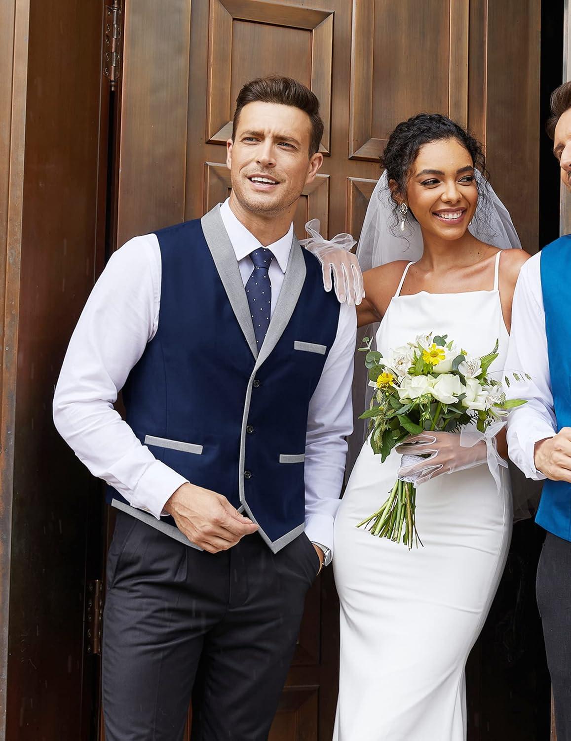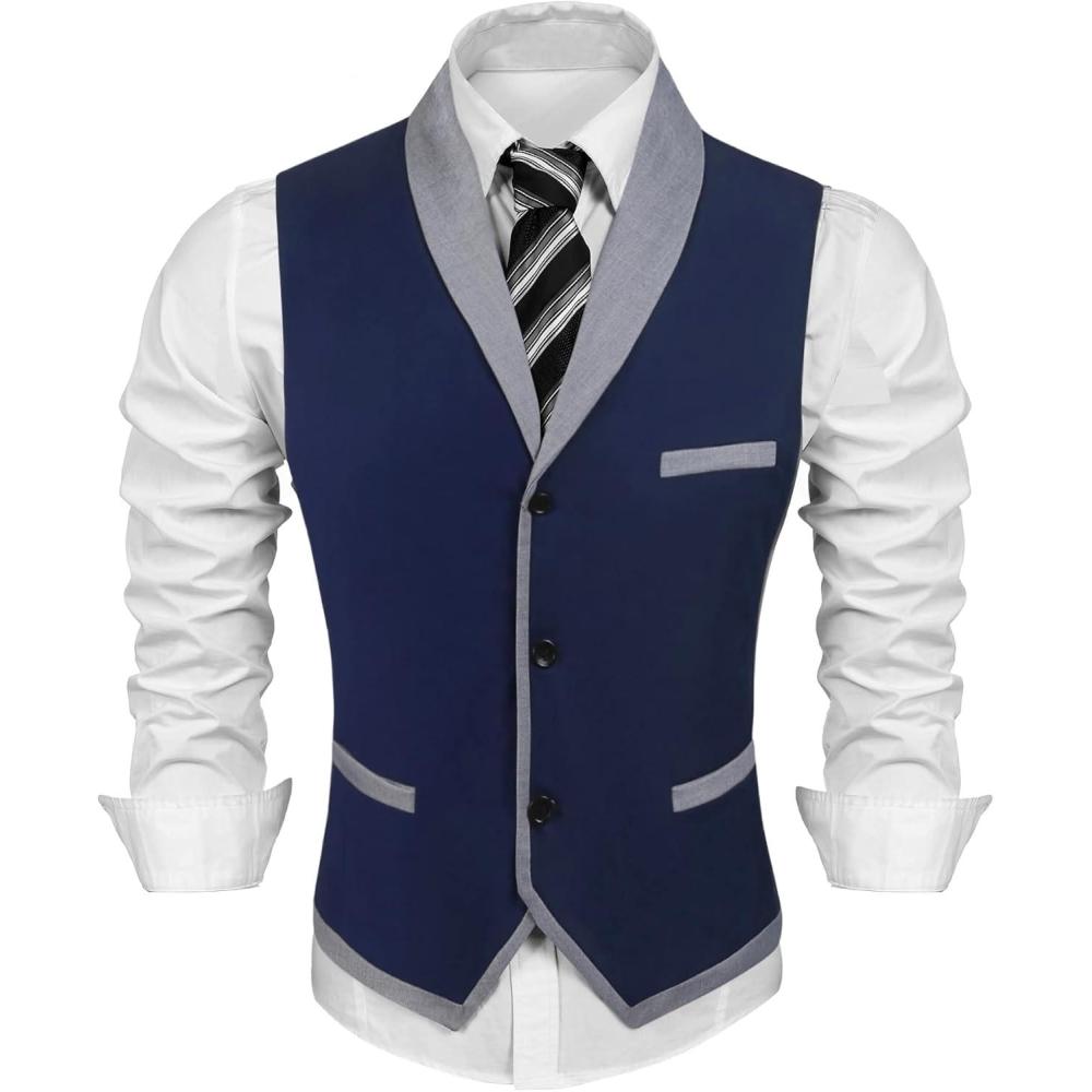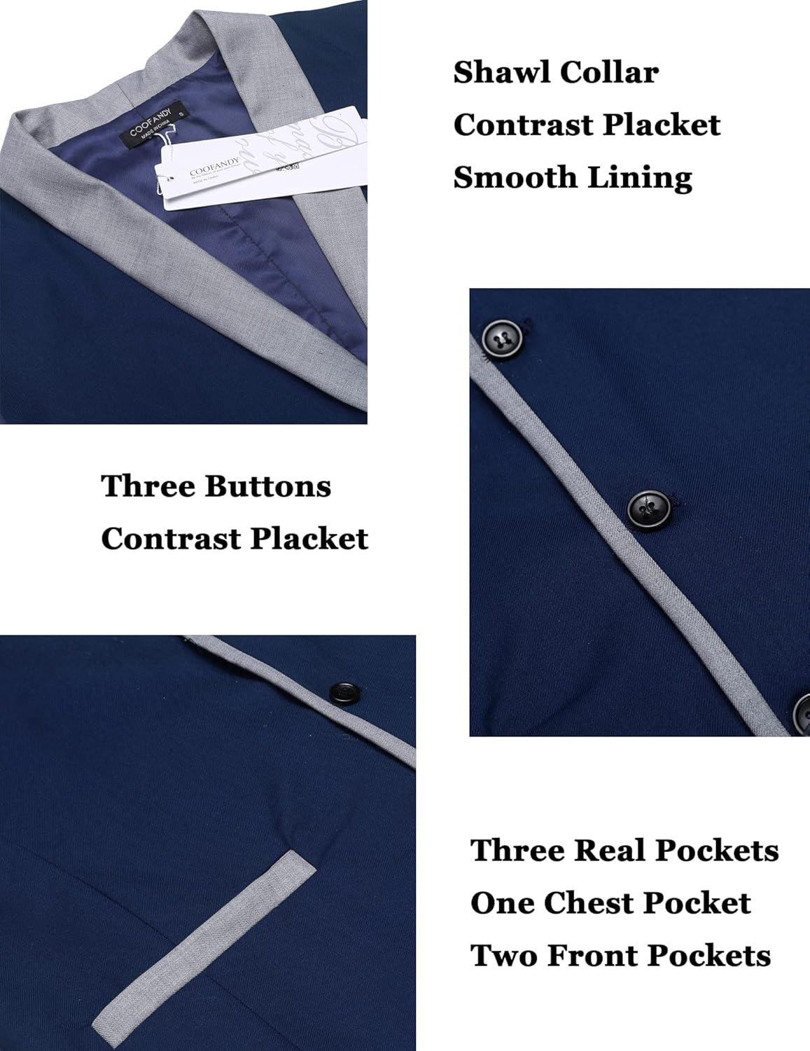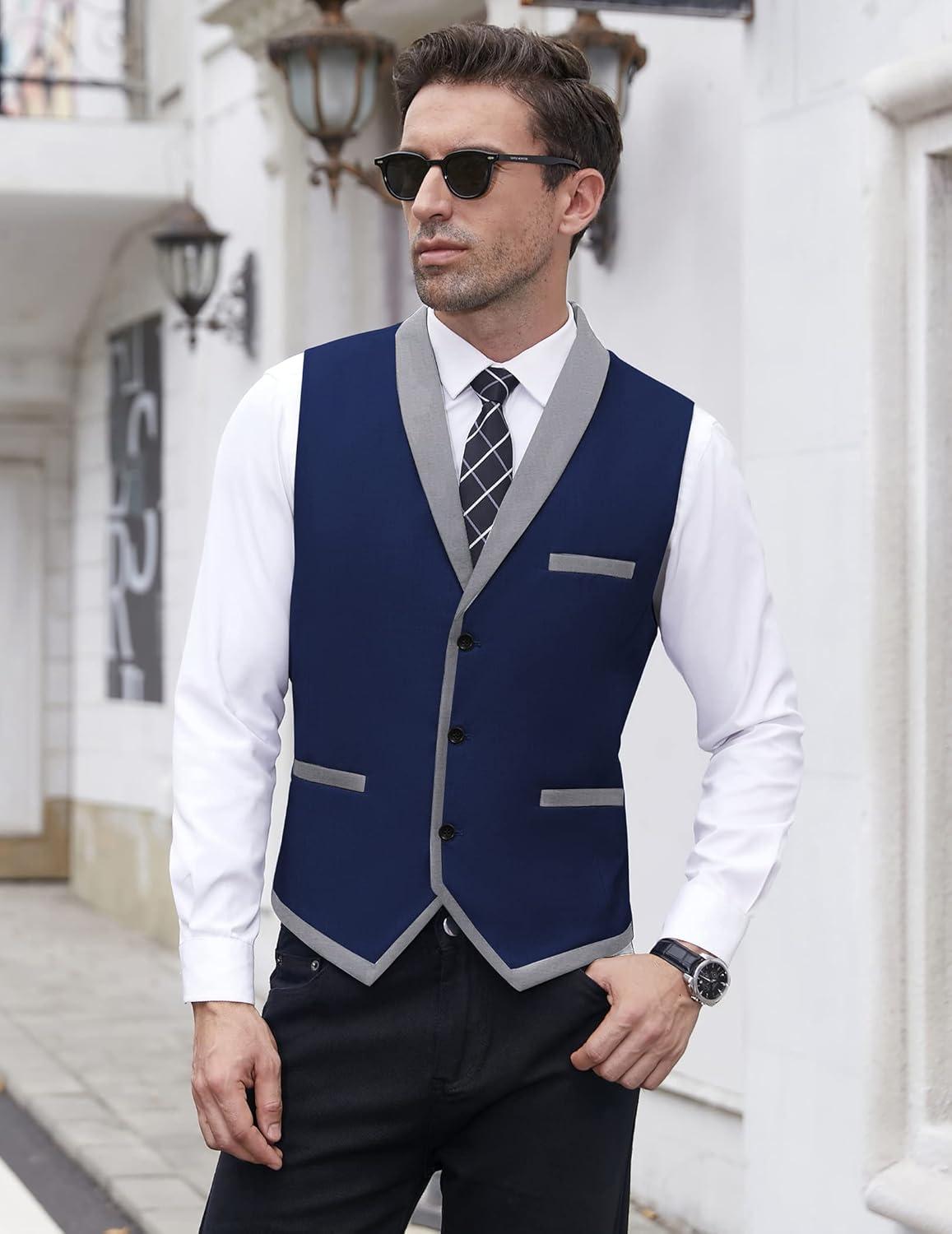 COOFANDY Men’s Suit Vest Slim Fit Formal Business Dress Vest Casual Wedding Waistcoat(Blue)