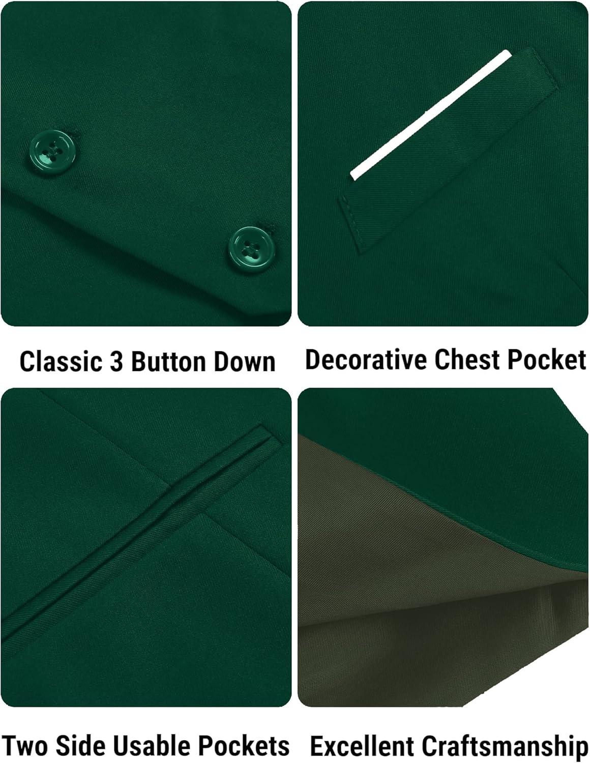 COOFANDY Men’s Suit Vest Slim Fit Formal Dress Waistcoat Casual Business Vests for Suit or Tuxedo(Green)