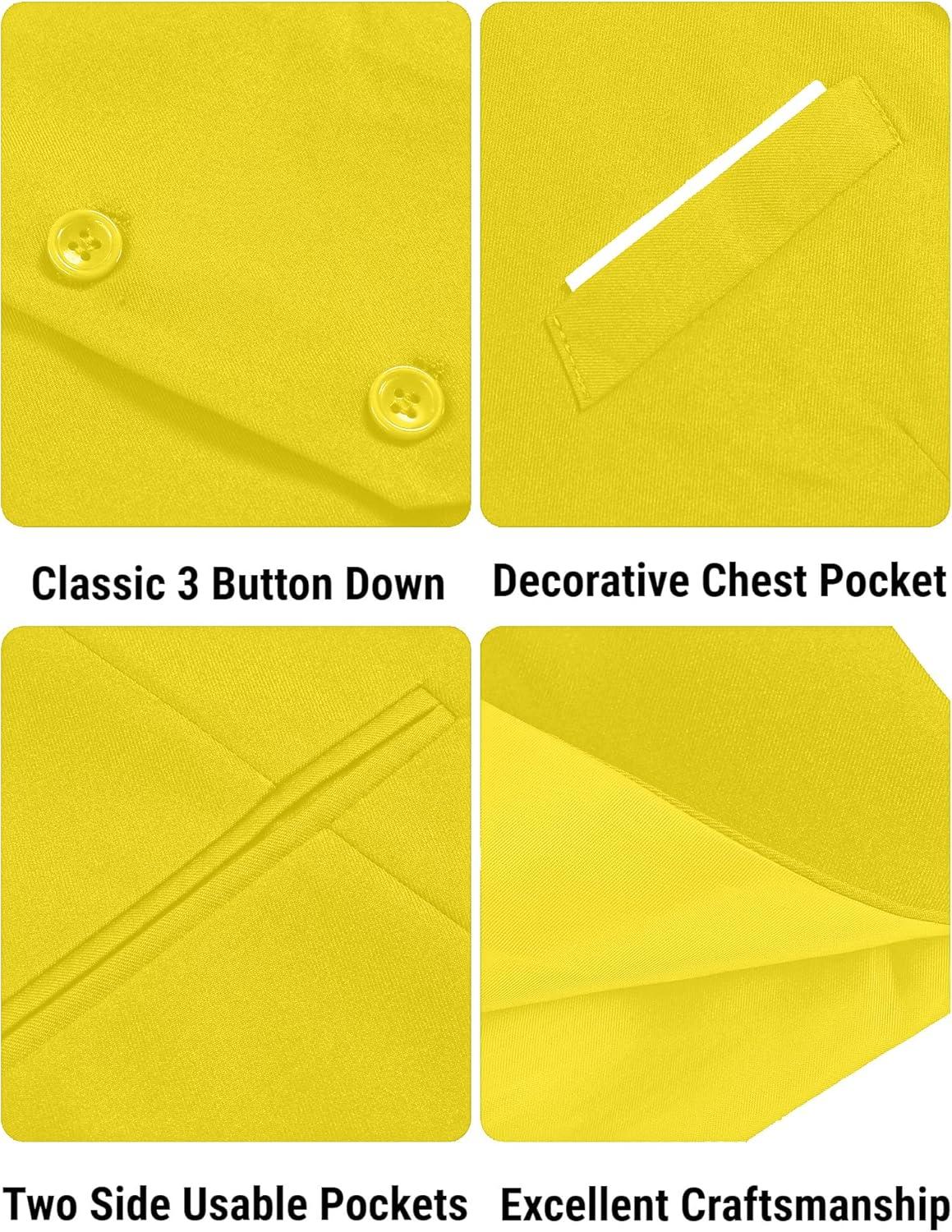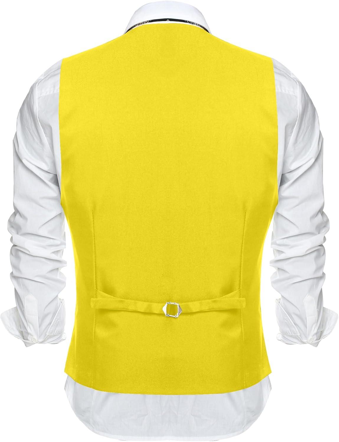 COOFANDY Men’s Suit Vest Slim Fit Formal Dress Waistcoat Casual Business Vests for Suit or Tuxedo(Yellow)