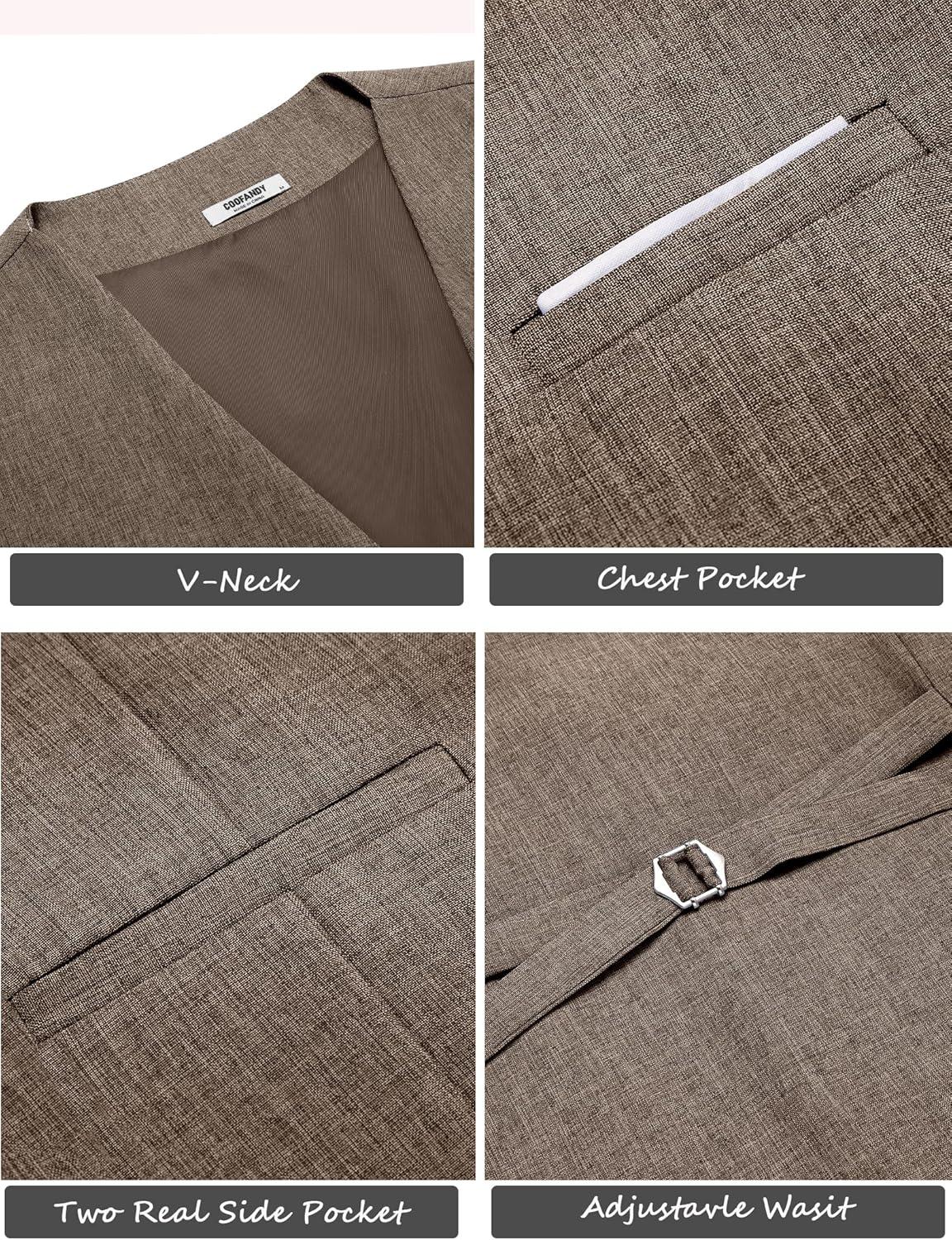 COOFANDY Men’s Suit Vest V-Neck Casual Business Vests Lightweight Slim Fit Formal Dress Waistcoat for Wedding Party(Brown)