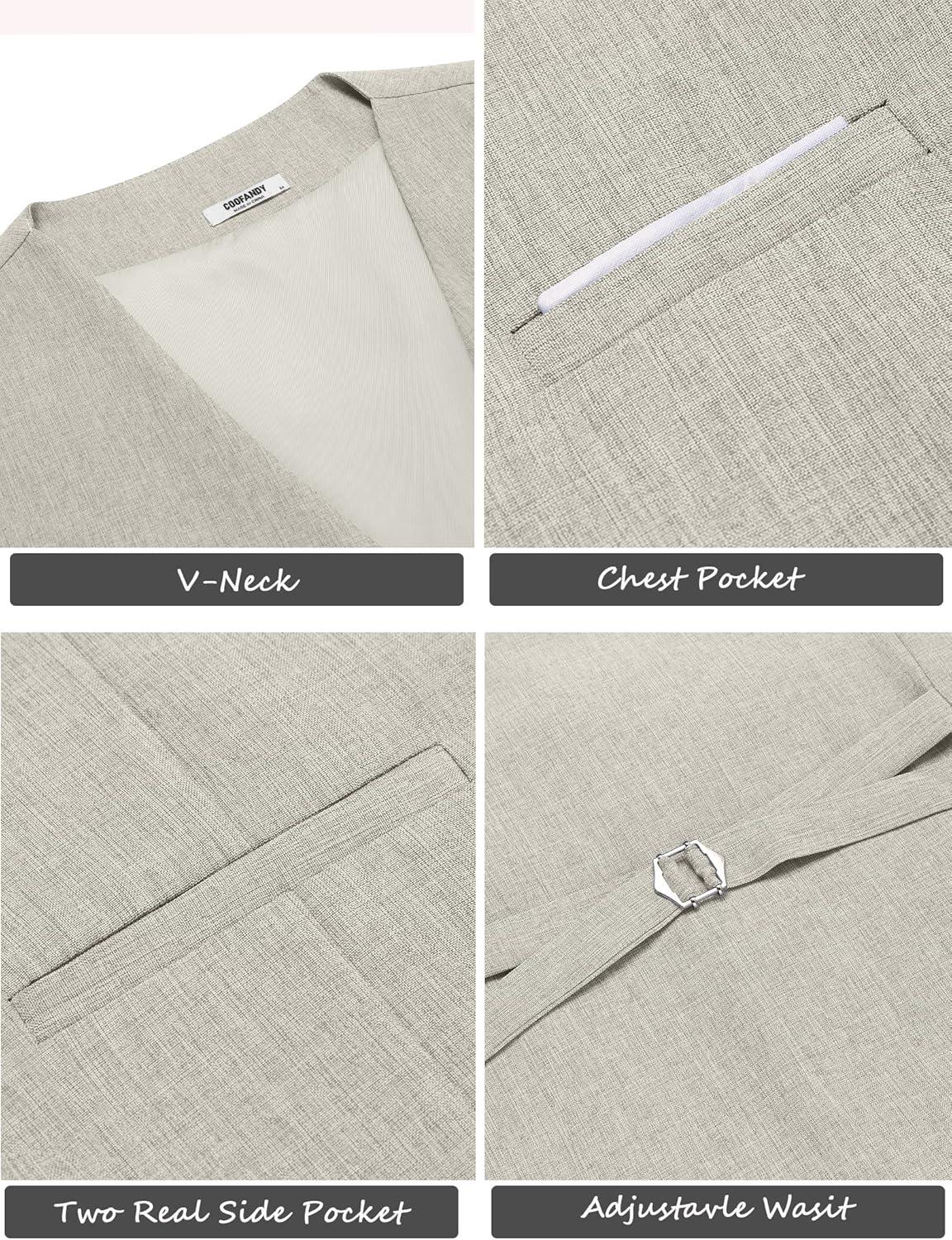 COOFANDY Men’s Suit Vest V-Neck Casual Business Vests Lightweight Slim Fit Formal Dress Waistcoat for Wedding Party(Light Grey)