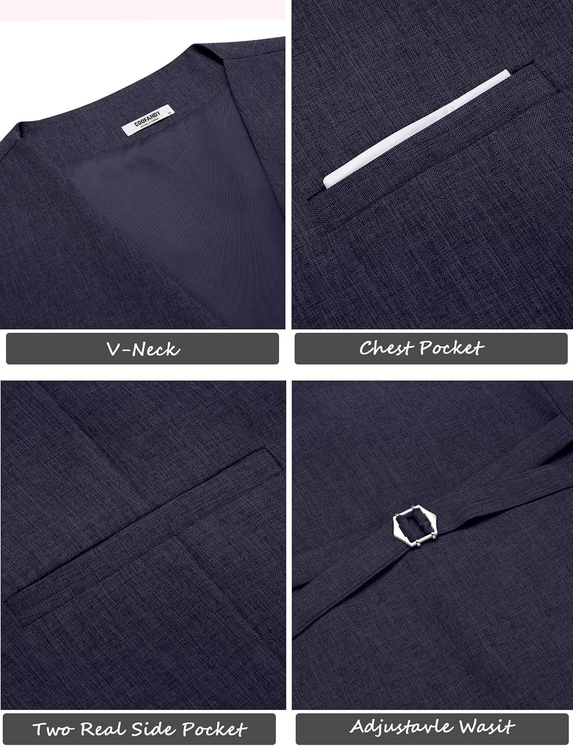 COOFANDY Men’s Suit Vest V-Neck Casual Business Vests Lightweight Slim Fit Formal Dress Waistcoat for Wedding Party(Navy Blue)