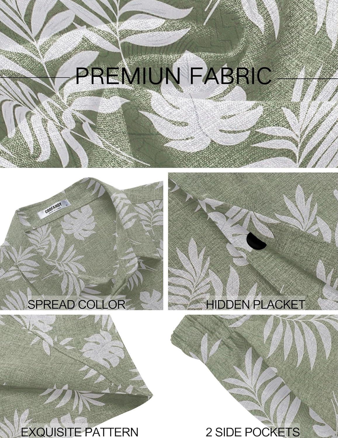 COOFANDY Men’s Summer Beach Outfits 2 Piece Short Sleeve Shirts and Shorts Vacation Texture Linen Sets for Men(Green – Leaf)