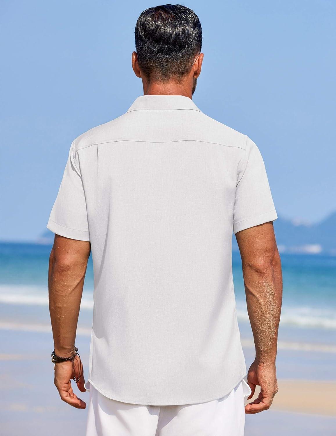 COOFANDY Men’s Summer Beach Vacation Shirt Casual Button Down Short Sleeve Shirt Hawaiian Tropical Resort Wear(White)
