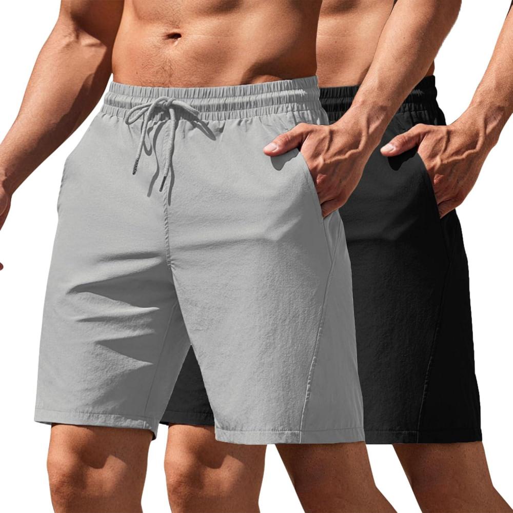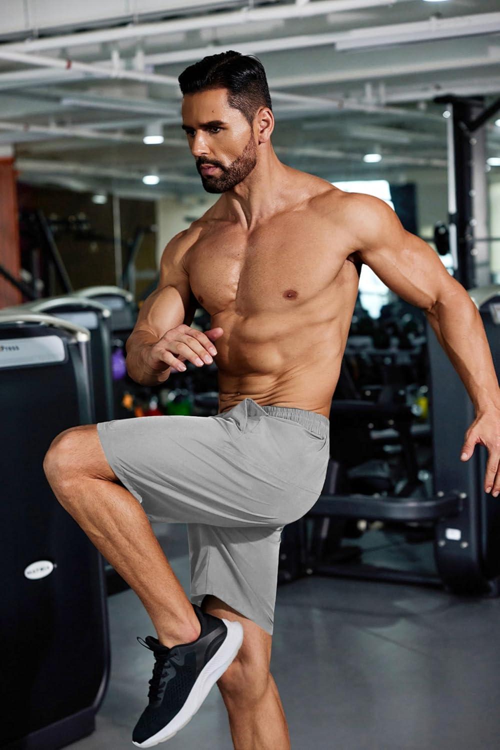 COOFANDY Men’s Sweat Shorts 9″ Drawstring Elastic Waist Gym Workout Shorts Casual Athletic Jogger Knit Shorts with Pockets(Black/Light Grey)