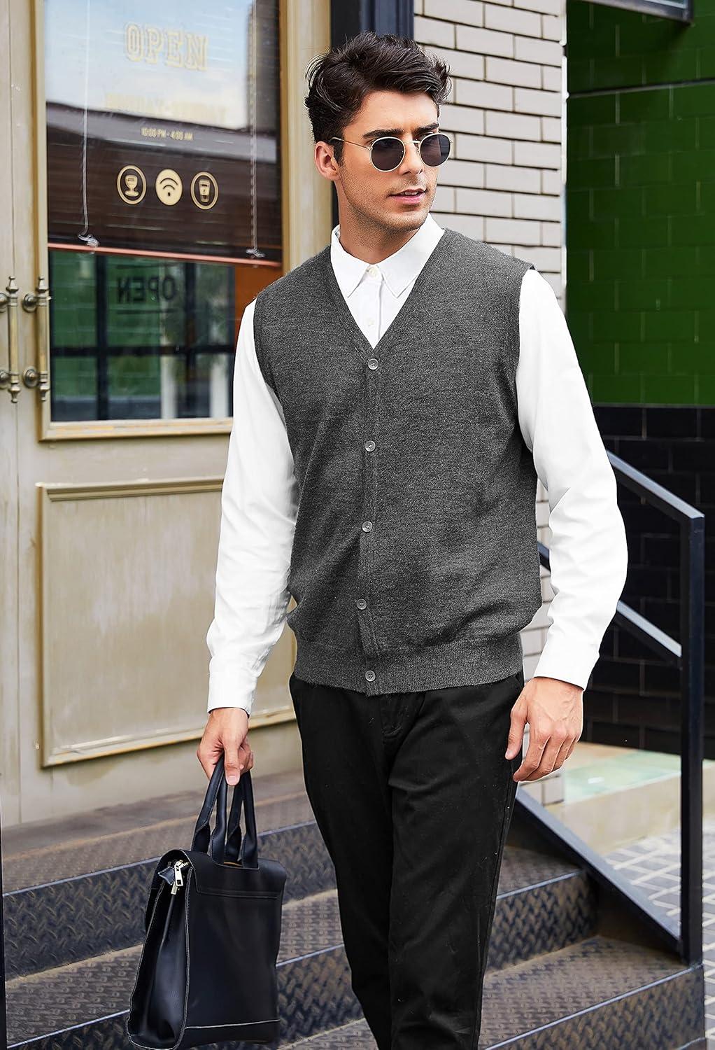 COOFANDY Men’s Sweater Vest V Neck Casual Sleeveless Knitted Button Cardigan Vest(Dark Grey)