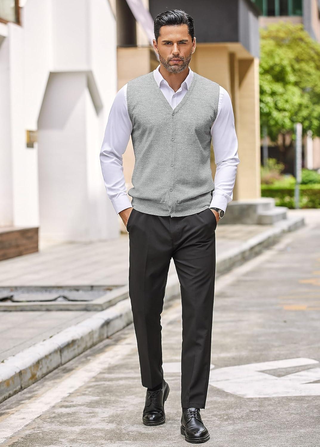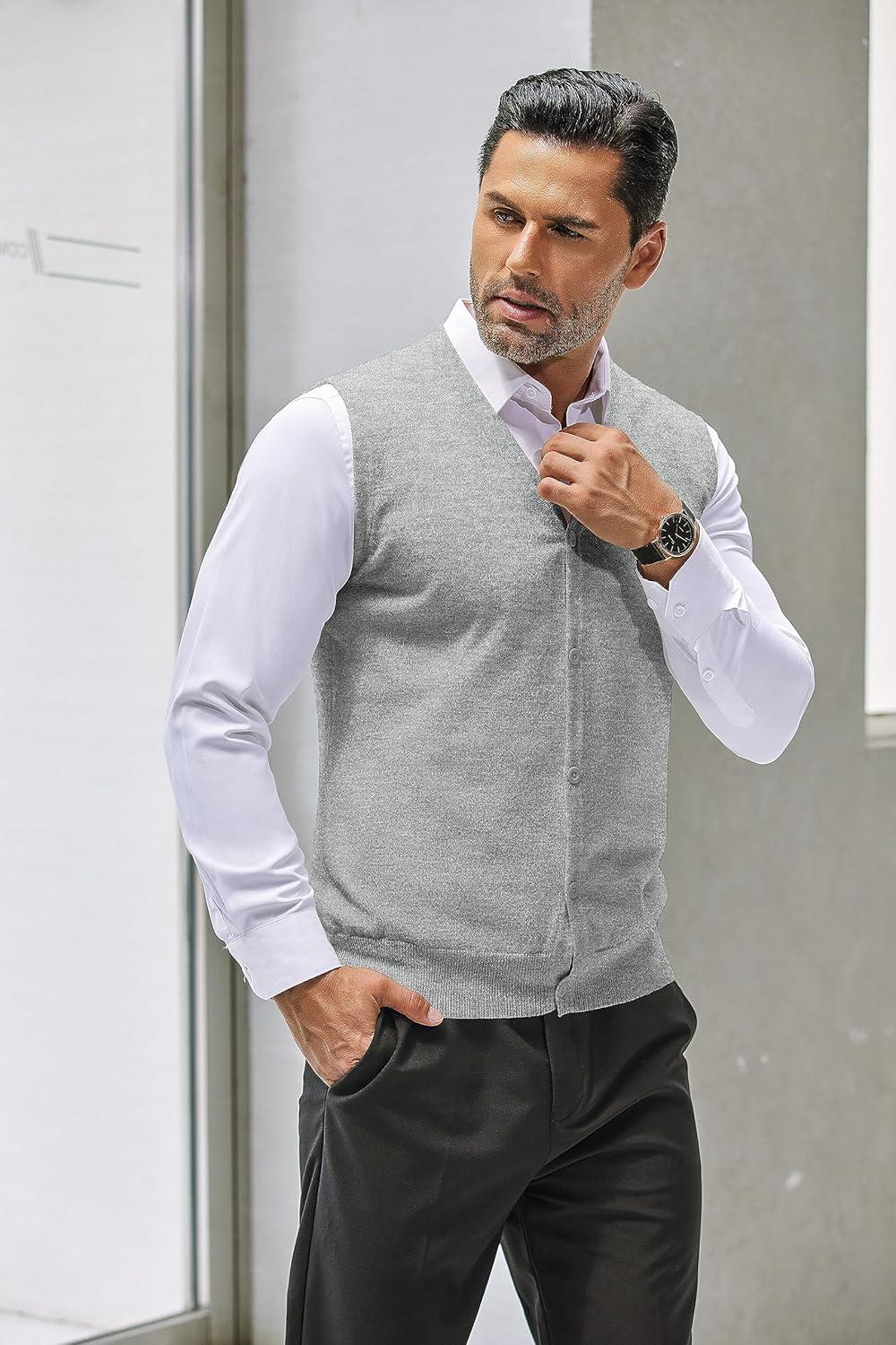 COOFANDY Men’s Sweater Vest V Neck Casual Sleeveless Knitted Button Cardigan Vest(Grey)