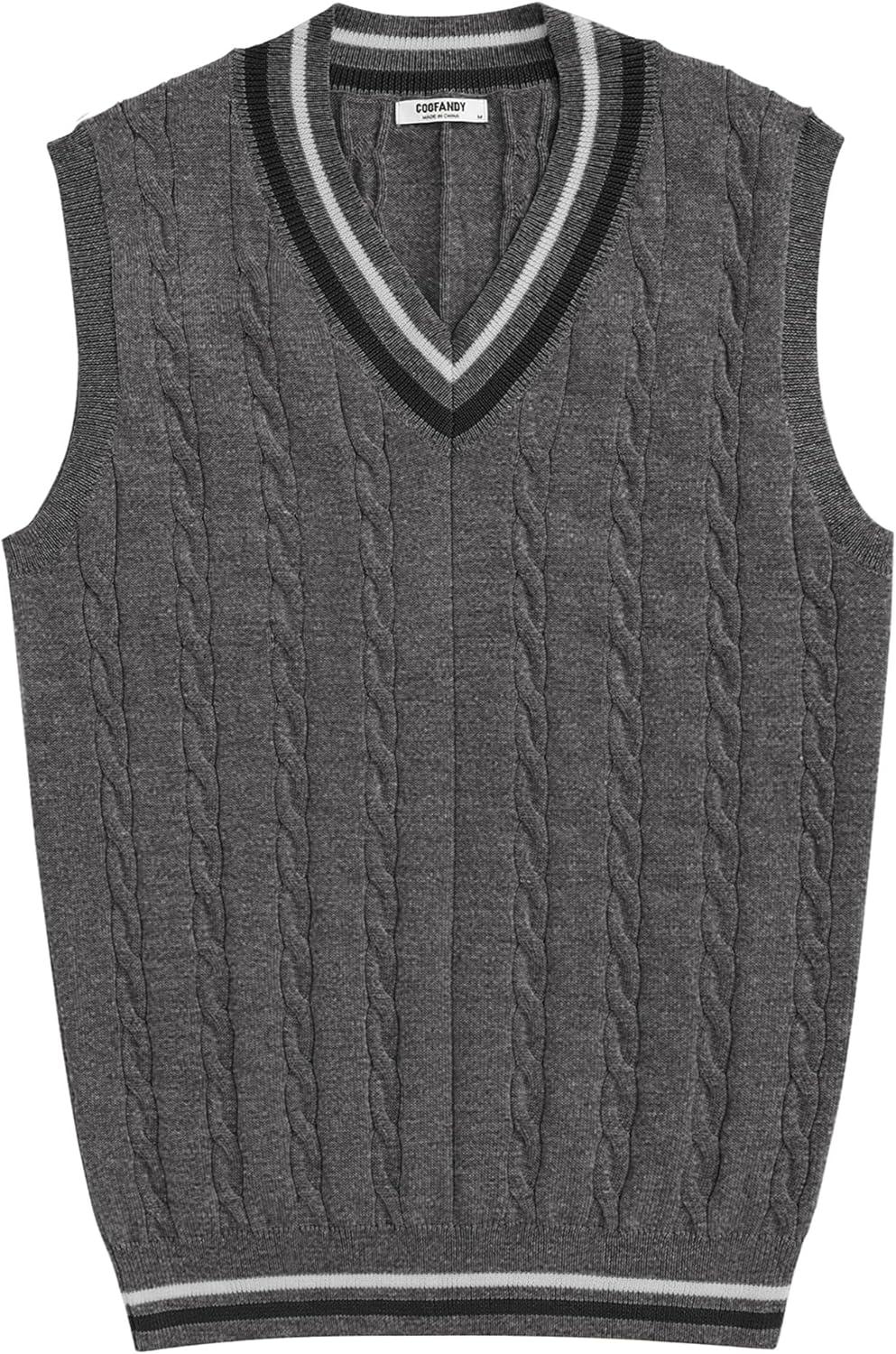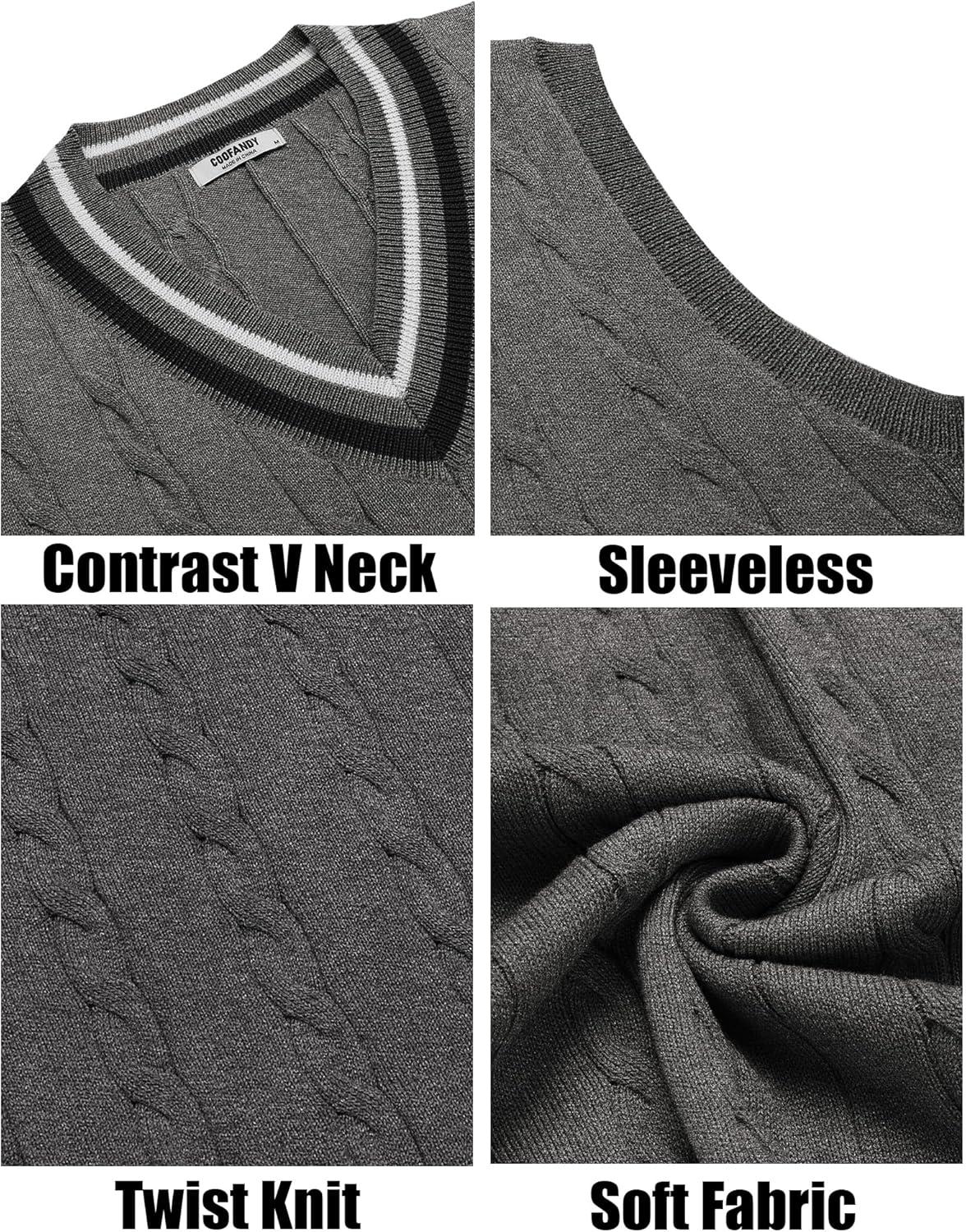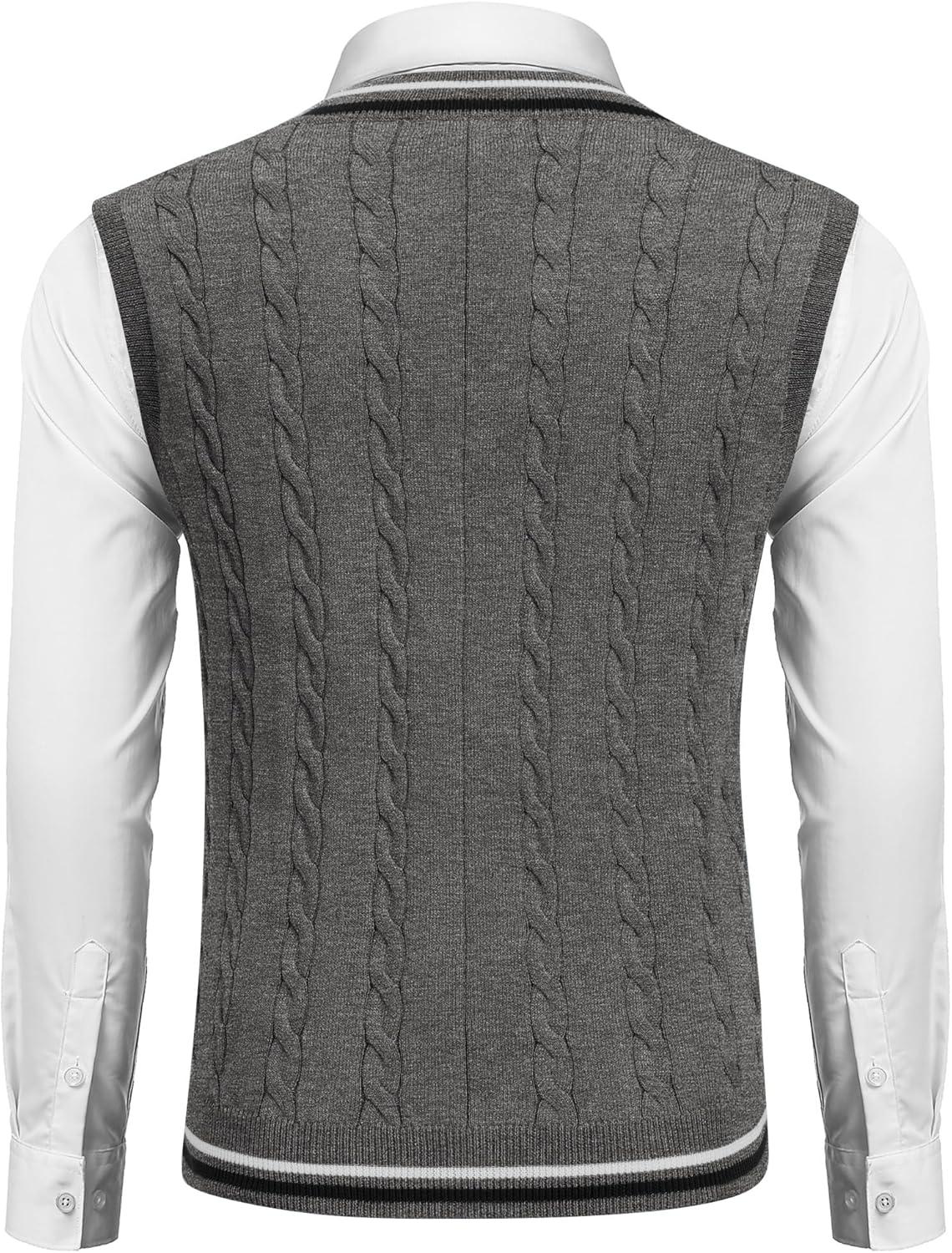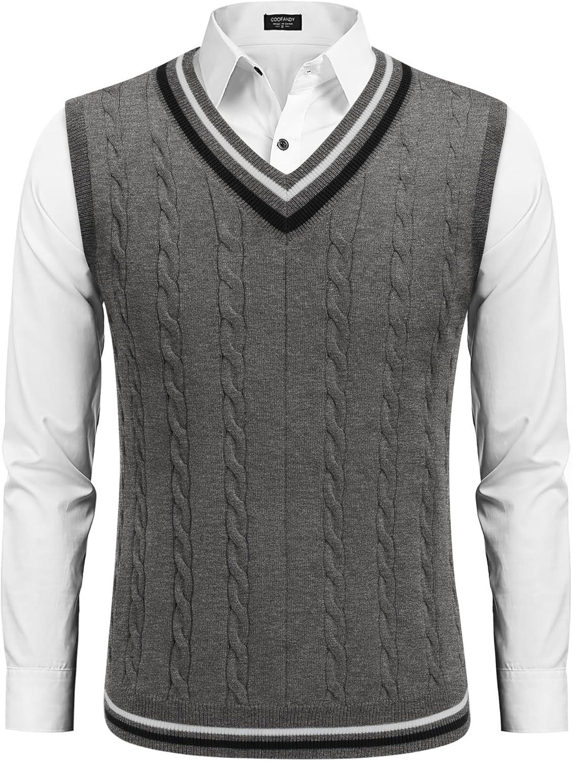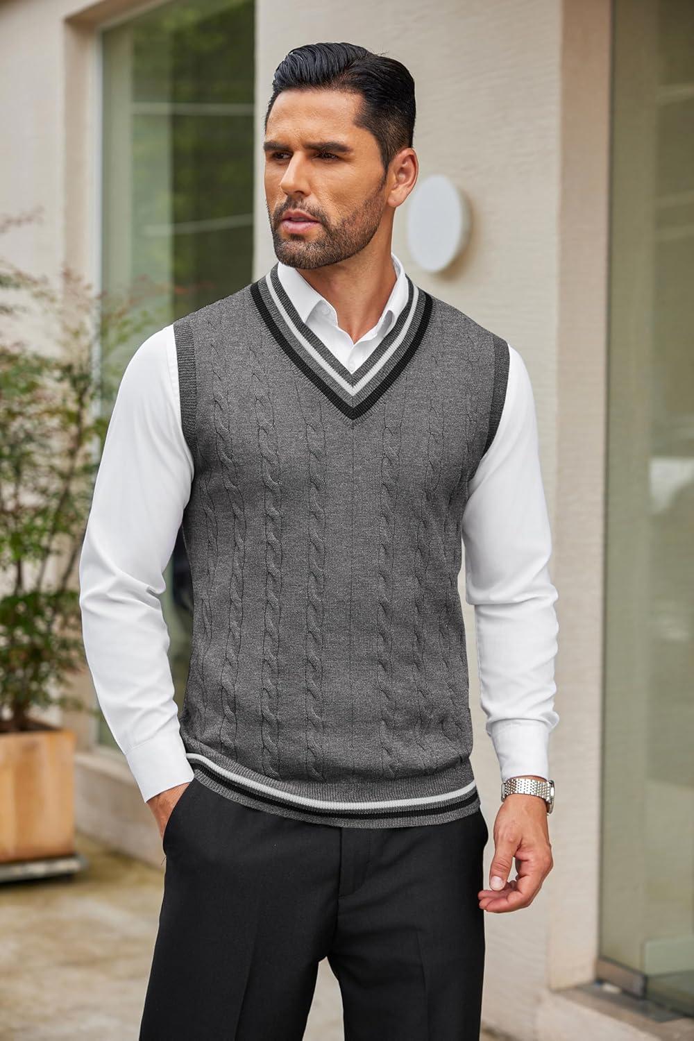 COOFANDY Men’s Sweater Vest V Neck Casual Sleeveless Pullover Striped Cable Knit Sweater Vest(Dark Grey)